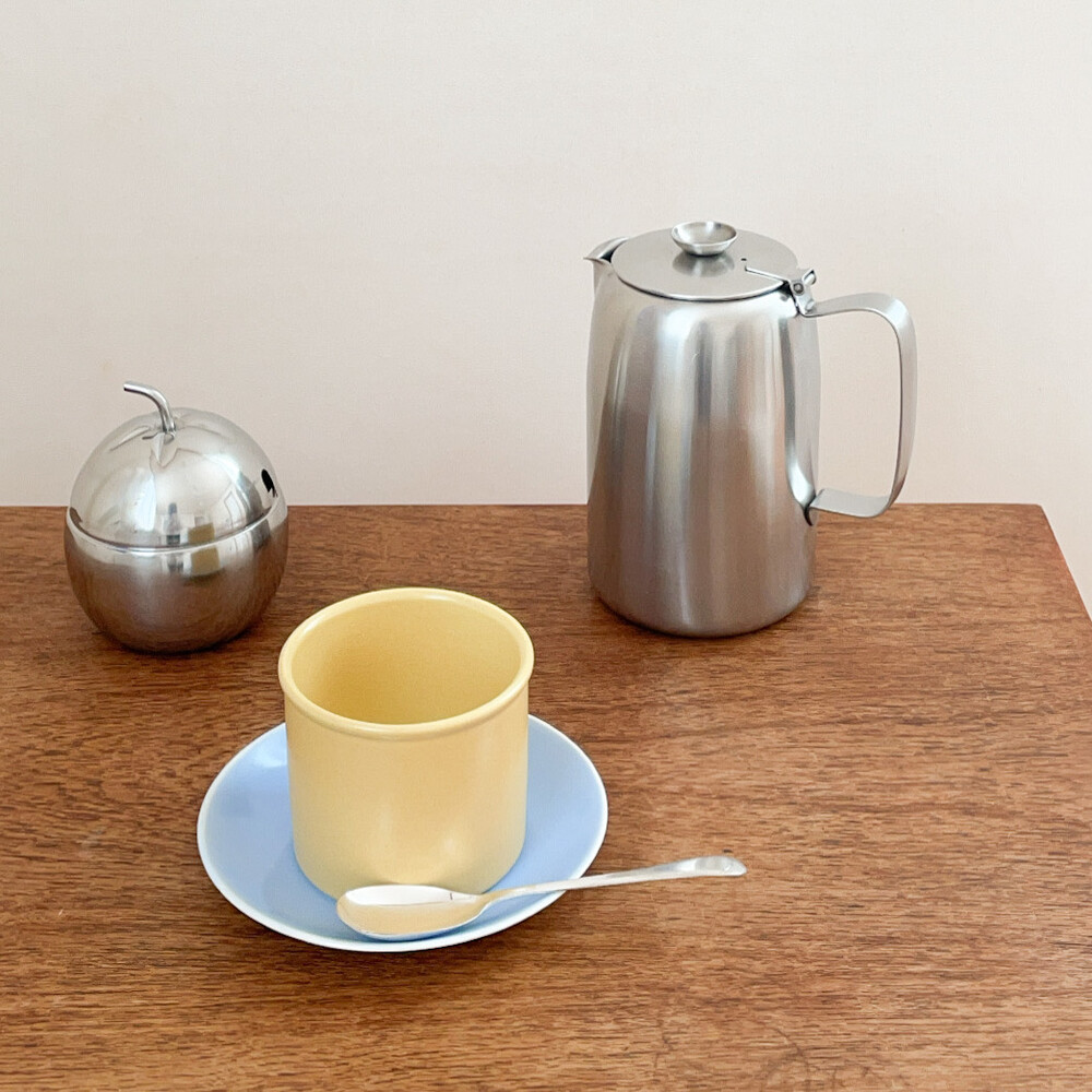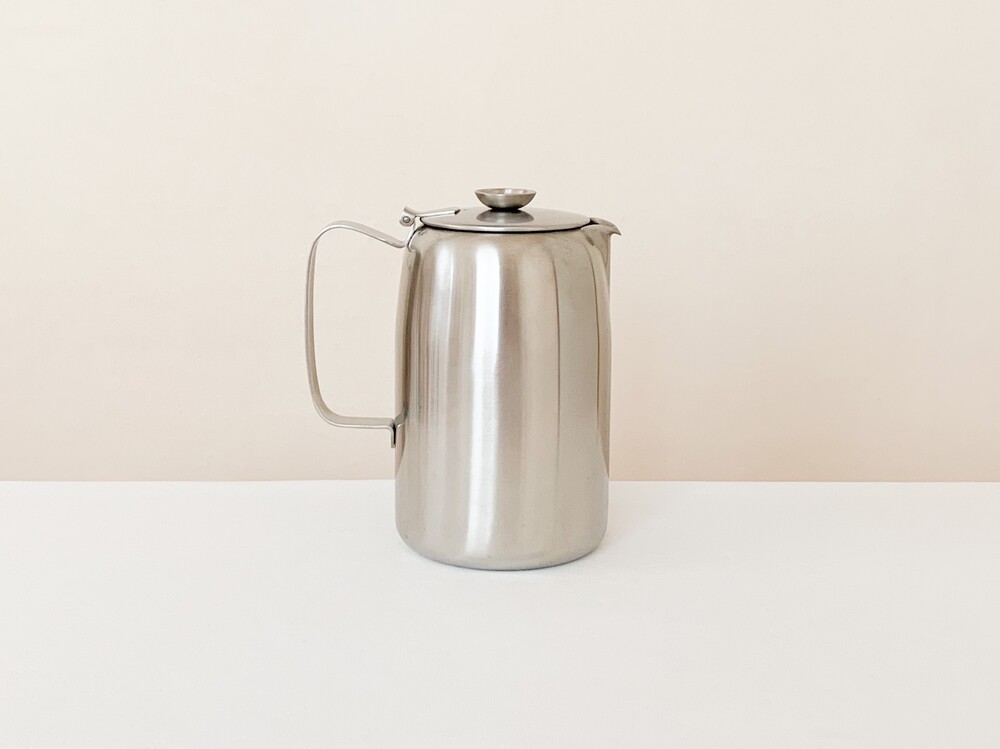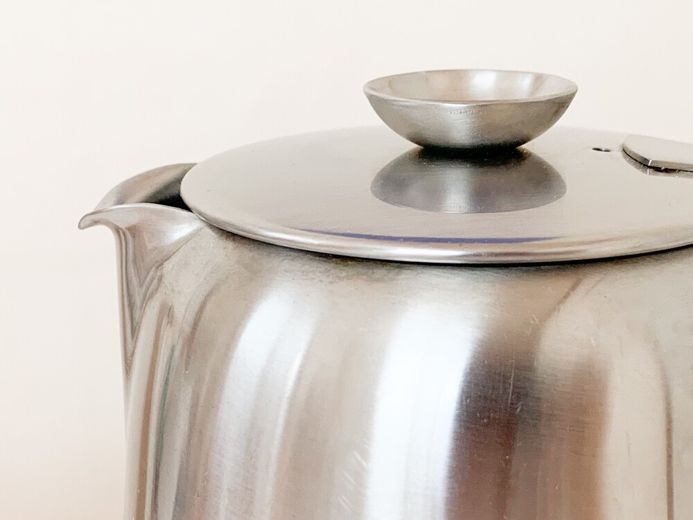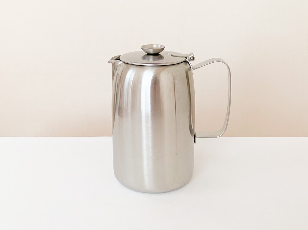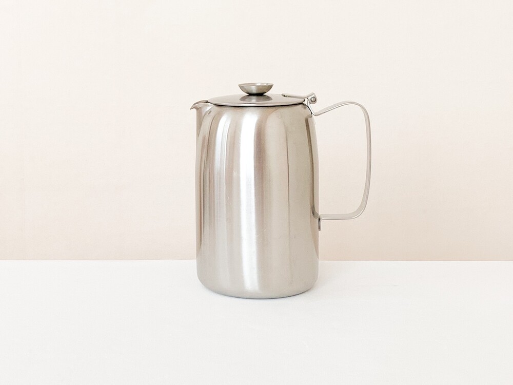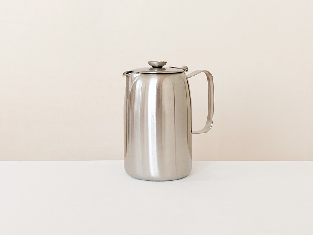 소개해드리는 제품은, 디자인어워드에서의 좋은 성과와 로열개런티를 받으며, 전성기를 맞이했던 시기인 1960년대에 만들어진 커피팟입니다. 밀도가 높고 매끄러운 스테인리스 스틸을 소재로 합니다. 넉넉하고 매끄러운 곡선의 바디, 차나 커피를를 잔에 담을때의 결을 생각한 아름다운 곡선의 스파우트, 단정하고 안정적인 실루엣의 뚜껑, 단단한 균형이 보여지는 완성 된 손잡이가 보여집니다. 높은 품질의 스테인리스스틸이 소재로 쓰인 만큼, 직화사용에서도 얼룩이 쉽게 생기지 않습니다. 변함없는 말끔한 소재와, 세심한 손길이 닿은 부분들에서 전해지는 편안하고 우아한 무게감을 살펴 볼 수 있습니다. 오후의 쉬는시간을 위한 티웨어나 매일 아침 식탁에서 따뜻한 물을 마시는 주전자로사용하기에 잘 어울립니다.