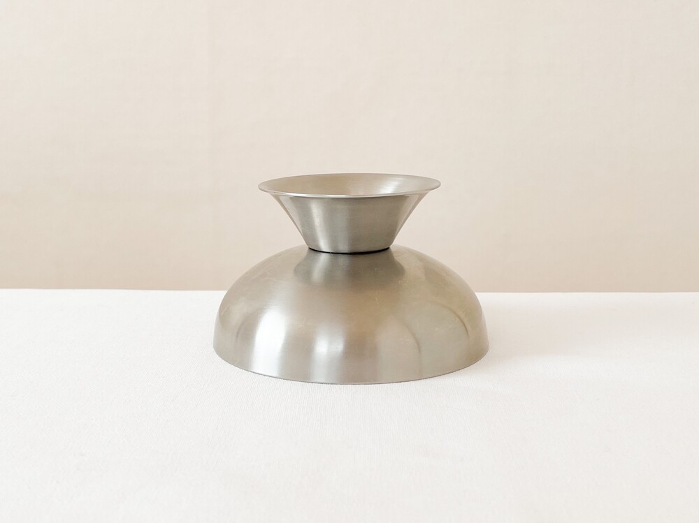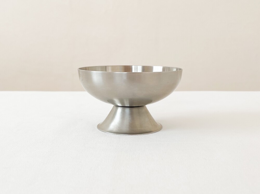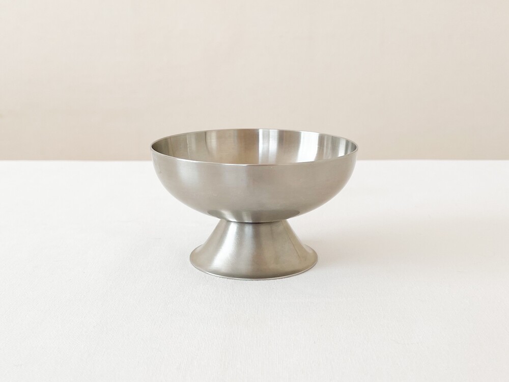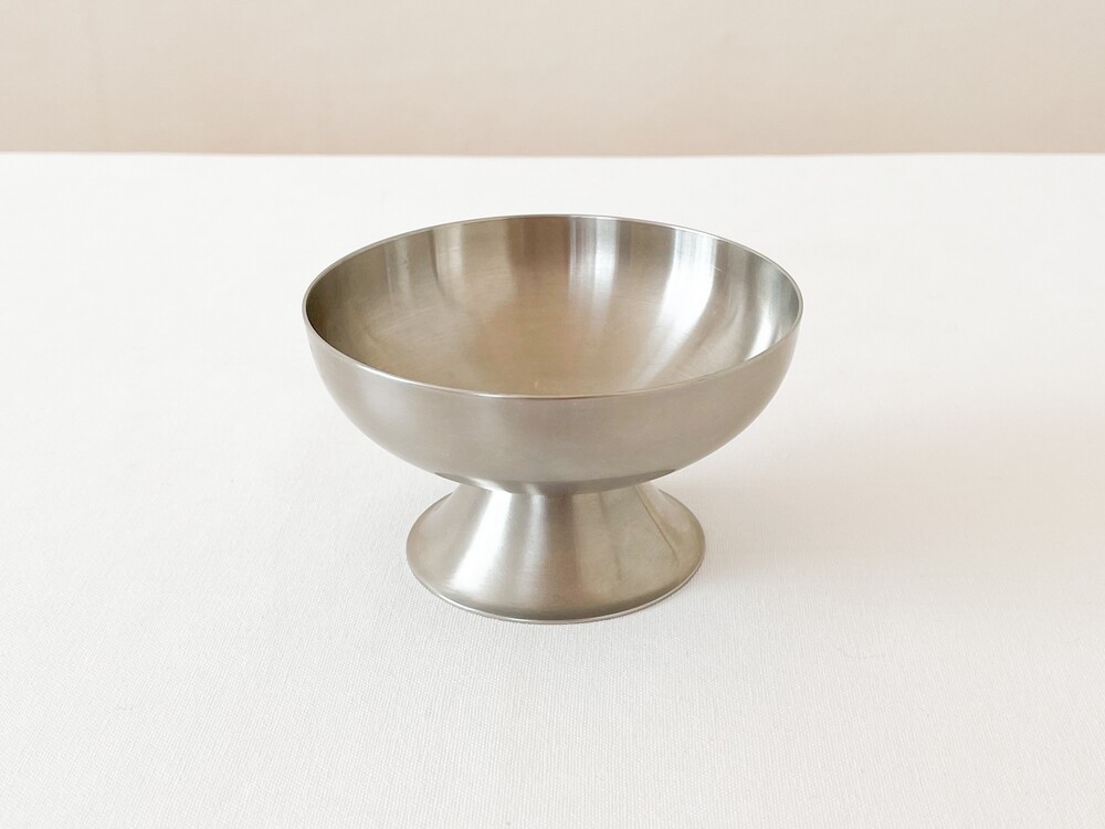 소개해드리는 아이스크림 디쉬는 올드홀을 대표하는 제품들을 다수 만들어낸 로버트.W경으로 부터, 1960년대 초반에 디자인 된 오리지널 제품입니다. 밀도가 높고 매끄러운 스테인리스 스틸을 소재로 만들어졌으며, 깊고 넓은 반원의 보울과 얌전한 모습으로 아래를 향해 펼쳐진 베이스로 모양을 이우로 있습니다. 아주 가느다랗고 고운 브러쉬를 사용해 잔잔한 광택을 완성하는 새틴브러쉬드 기법으로 마무리가 되어있으며, 소재의 견고함과 매끄럽고 균형있는 디테일이 돋보입니다. 올드홀 고유의 흐르는듯 부드럽고, 무척 간결하고 정확한 실루엣이 아름답습니다. 따사로운 계절의 쉬는 시간을 위한 아이스크림을 둥글게 담아내는 디저트 그릇으로, 아침 식탁의 요거트나 뮤즐리를 담아내는 보울로 사용하기에 잘 어울립니다.