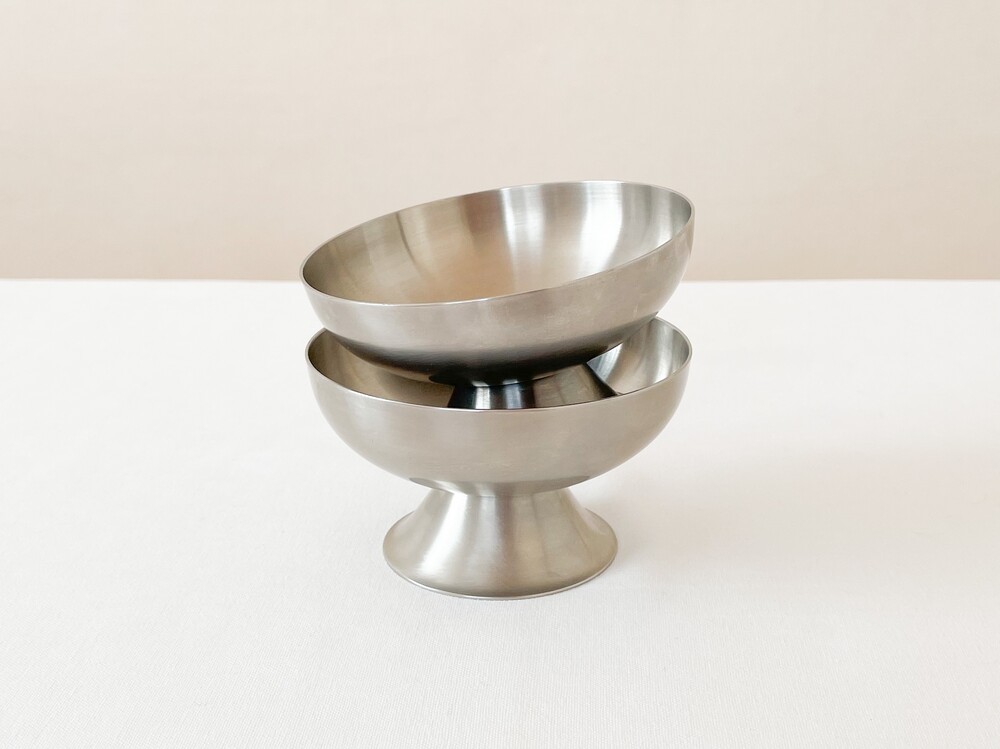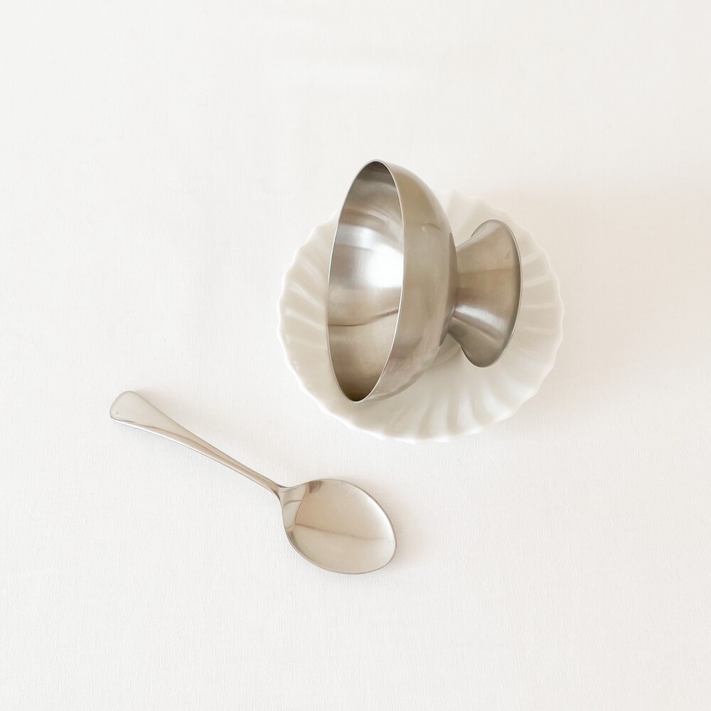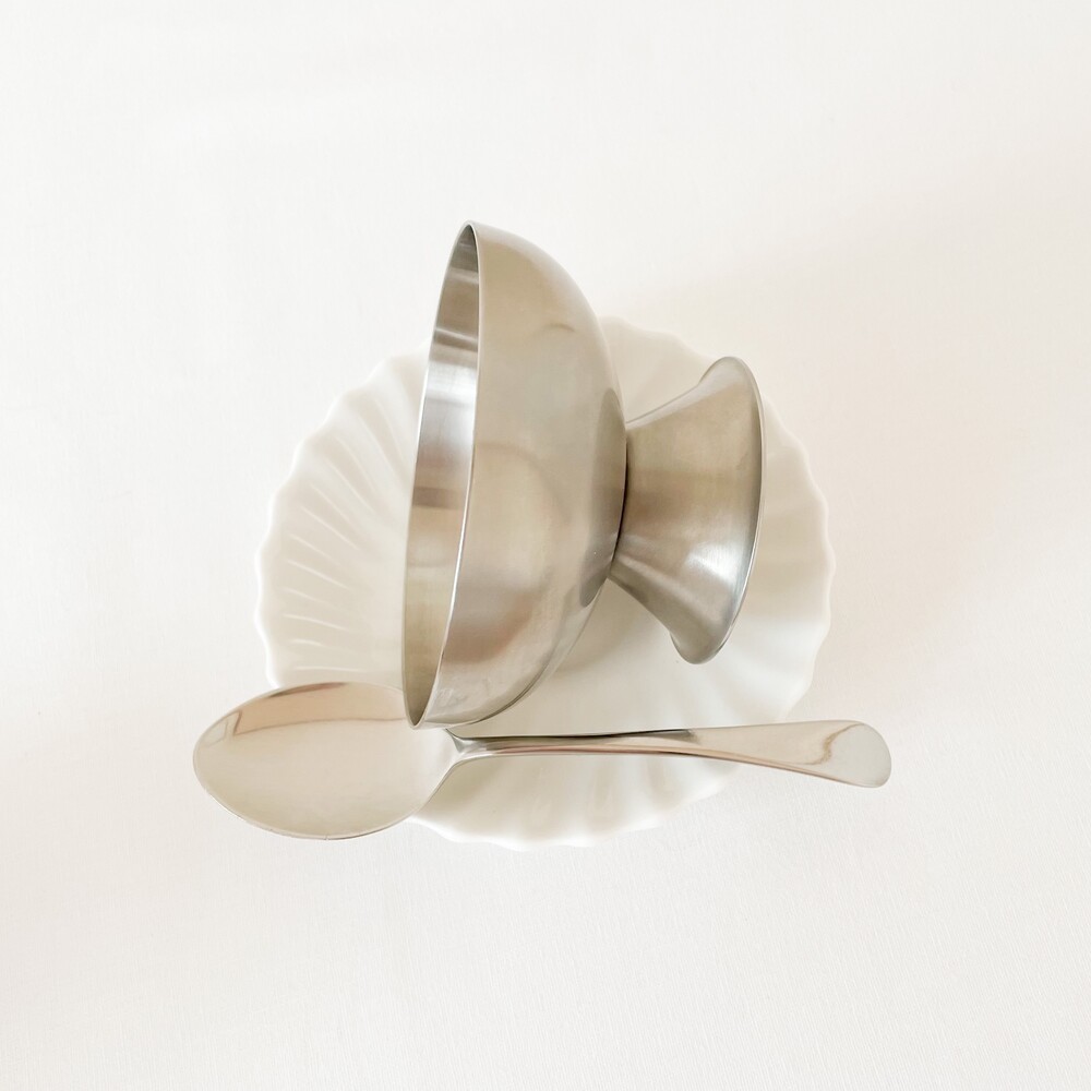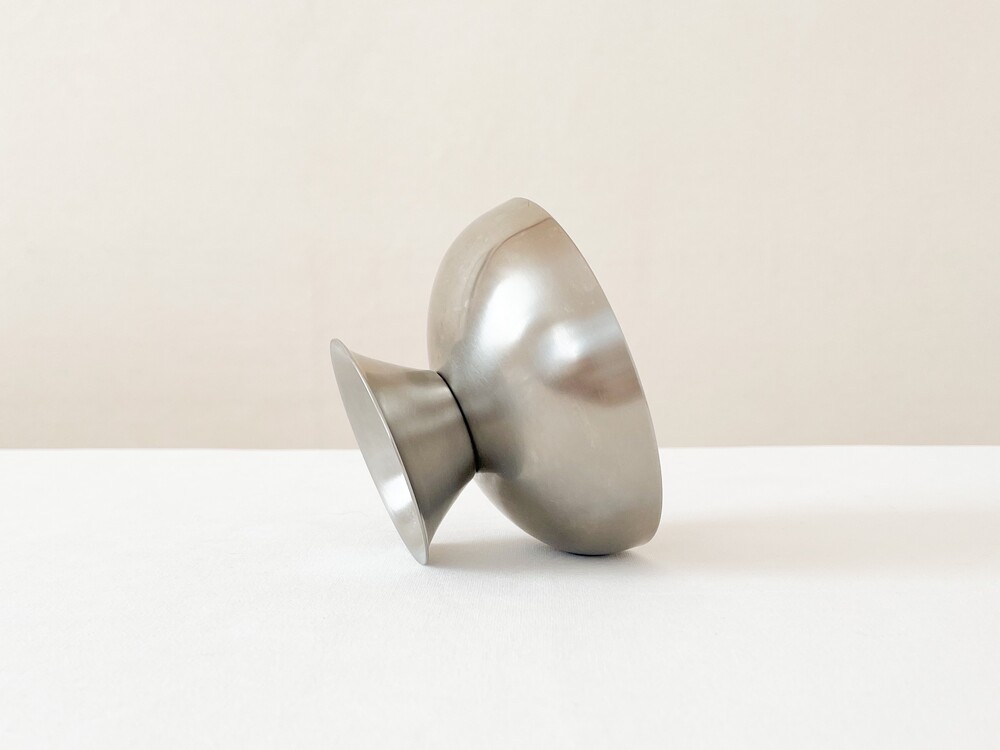 소개해드리는 아이스크림 디쉬는 올드홀을 대표하는 제품들을 다수 만들어낸 로버트.W경으로 부터, 1960년대 초반에 디자인 된 오리지널 제품입니다. 밀도가 높고 매끄러운 스테인리스 스틸을 소재로 만들어졌으며, 깊고 넓은 반원의 보울과 얌전한 모습으로 아래를 향해 펼쳐진 베이스로 모양을 이우로 있습니다. 아주 가느다랗고 고운 브러쉬를 사용해 잔잔한 광택을 완성하는 새틴브러쉬드 기법으로 마무리가 되어있으며, 소재의 견고함과 매끄럽고 균형있는 디테일이 돋보입니다. 올드홀 고유의 흐르는듯 부드럽고, 무척 간결하고 정확한 실루엣이 아름답습니다. 따사로운 계절의 쉬는 시간을 위한 아이스크림을 둥글게 담아내는 디저트 그릇으로, 아침 식탁의 요거트나 뮤즐리를 담아내는 보울로 사용하기에 잘 어울립니다.