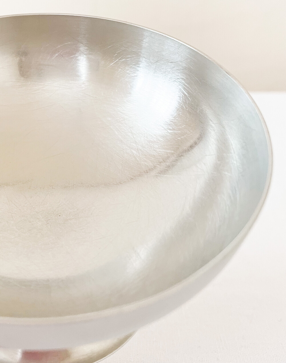 소개해드리는 아이스크림 디쉬는 올드홀을 대표하는 제품들을 다수 만들어낸 로버트.W경으로 부터, 1960년대 초반에 디자인 된 오리지널 제품입니다. 밀도가 높고 매끄러운 스테인리스 스틸을 소재로 만들어졌으며, 깊고 넓은 반원의 보울과 얌전한 모습으로 아래를 향해 펼쳐진 베이스로 모양을 이우로 있습니다. 아주 가느다랗고 고운 브러쉬를 사용해 잔잔한 광택을 완성하는 새틴브러쉬드 기법으로 마무리가 되어있으며, 소재의 견고함과 매끄럽고 균형있는 디테일이 돋보입니다. 올드홀 고유의 흐르는듯 부드럽고, 무척 간결하고 정확한 실루엣이 아름답습니다. 따사로운 계절의 쉬는 시간을 위한 아이스크림을 둥글게 담아내는 디저트 그릇으로, 아침 식탁의 요거트나 뮤즐리를 담아내는 보울로 사용하기에 잘 어울립니다.