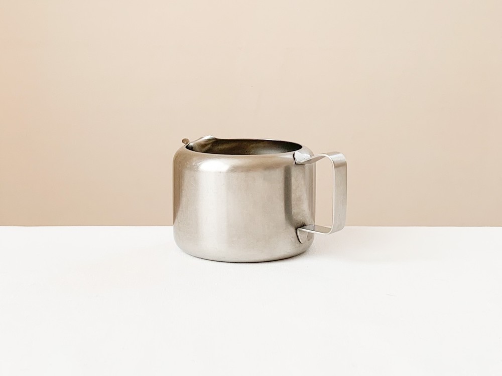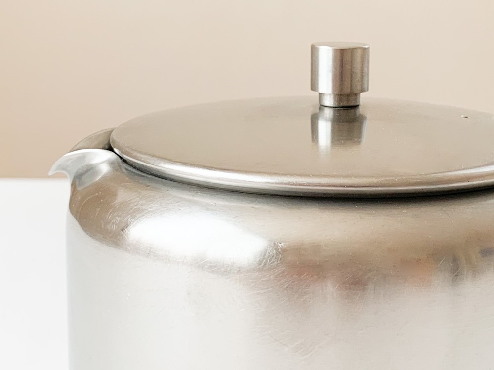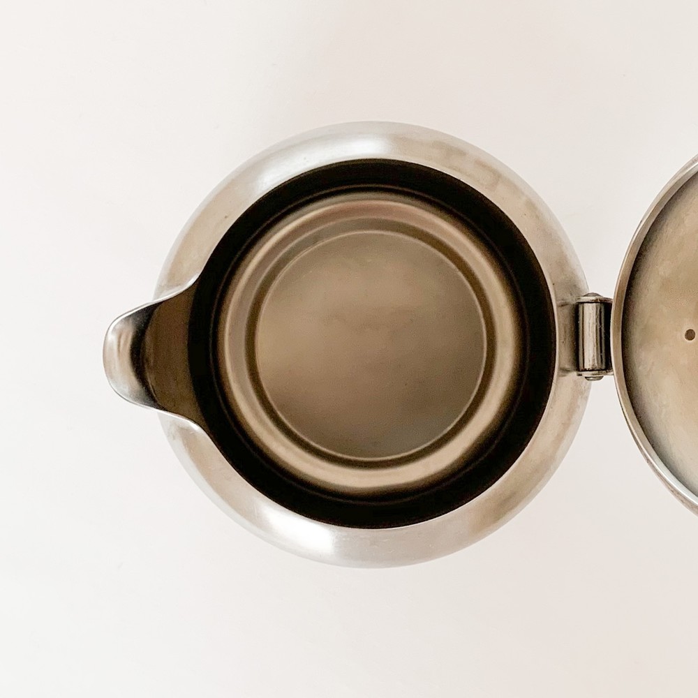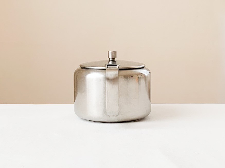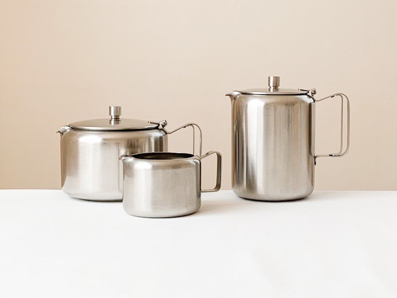 소개해드리는 제품은 디자인어워드에서의 좋은 성과와 로열개런티 가지게되며 전성기를 맞이했던 시기인 1960년대에 만들어진 티세트입니다. 티팟과 워터팟 그리고 크리머가 준비되어 있으며, 밀도가 높고 매끄러운 스테인리스 스틸을 소재로 만들어졌습니다. 단정하고 안정적인 실루엣과 차나 물을 잔에 담을때의 결을 생각한 섬세한 부분들이 보여집니다. 적당히 넉넉한 용량과 직화사용이 가능해 여러 용도로 편하게 사용할 수 있습니다. 변함없는 소재의 무게감과, 풍성하고 유연하게 다듬어진 모습이 만들어내는 편안한 온기가 전해지는 제품입니다. 매일 사용하는 식탁위의 물주전자로, 여유롭고 아름다운 오후의 티테이블을위한 티웨어로 사용하기에 잘 어울립니다.