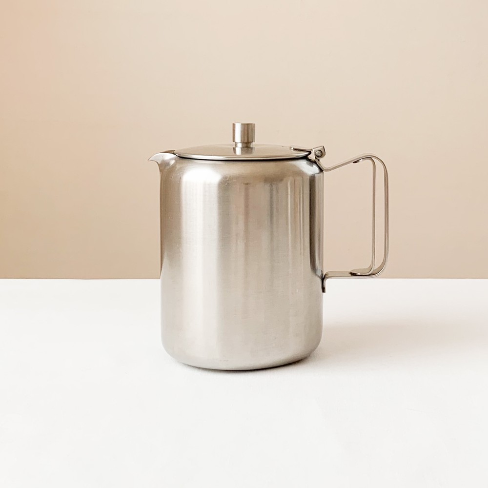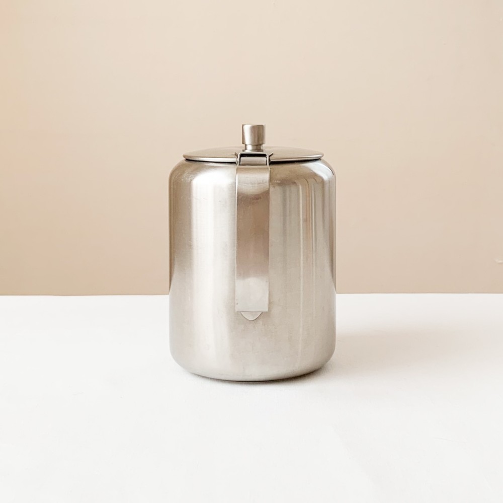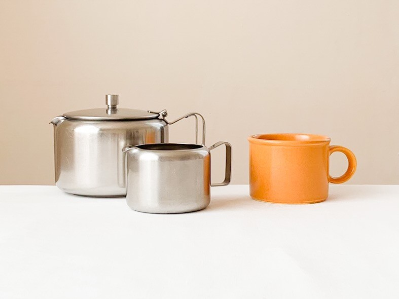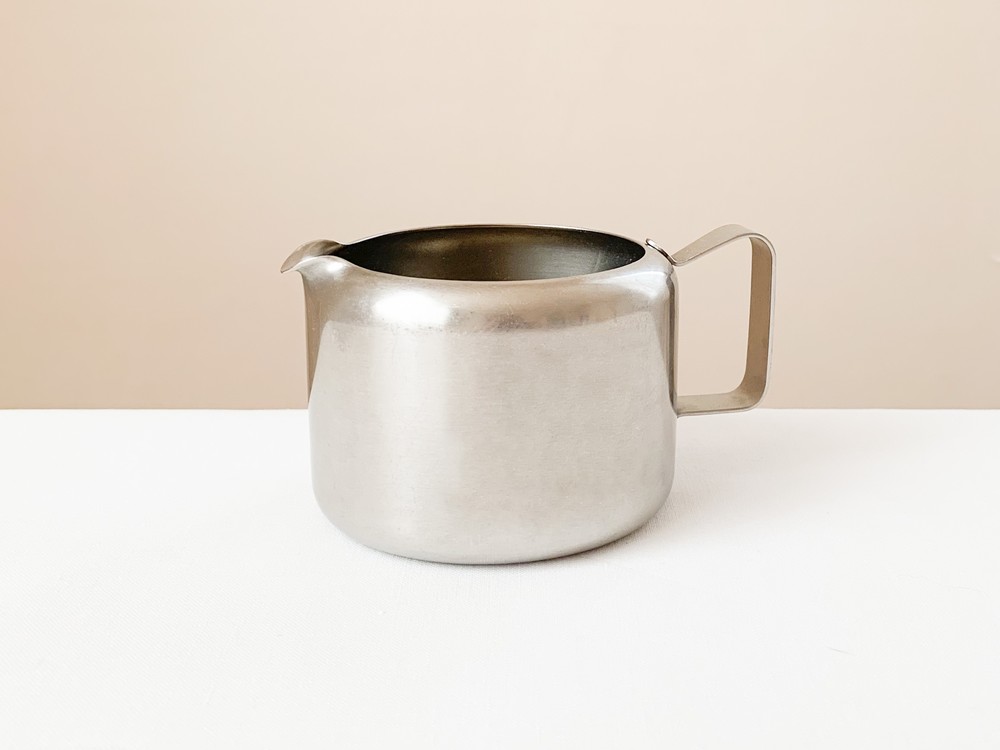 소개해드리는 제품은 디자인어워드에서의 좋은 성과와 로열개런티 가지게되며 전성기를 맞이했던 시기인 1960년대에 만들어진 티세트입니다. 티팟과 워터팟 그리고 크리머가 준비되어 있으며, 밀도가 높고 매끄러운 스테인리스 스틸을 소재로 만들어졌습니다. 단정하고 안정적인 실루엣과 차나 물을 잔에 담을때의 결을 생각한 섬세한 부분들이 보여집니다. 적당히 넉넉한 용량과 직화사용이 가능해 여러 용도로 편하게 사용할 수 있습니다. 변함없는 소재의 무게감과, 풍성하고 유연하게 다듬어진 모습이 만들어내는 편안한 온기가 전해지는 제품입니다. 매일 사용하는 식탁위의 물주전자로, 여유롭고 아름다운 오후의 티테이블을위한 티웨어로 사용하기에 잘 어울립니다.