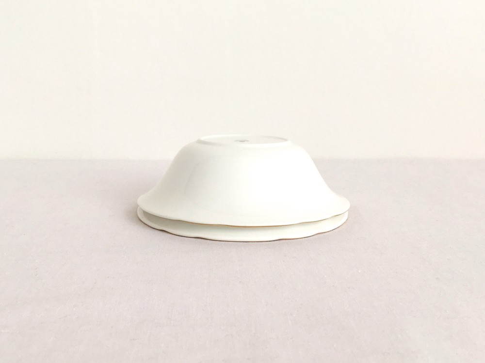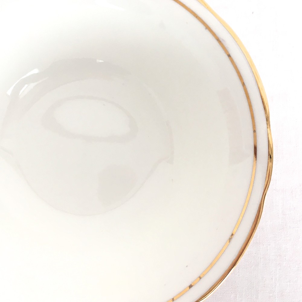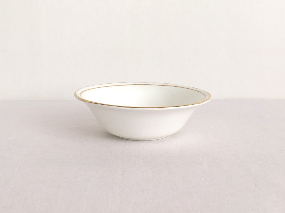 소개해드리는 제품은 하얀색에 가까운 밝은 크림색 본차이나를 소재로 만들어진 더체스 디저트보울입니다. 비교적 넉넉한 크기와 깊이의 보울은, 둥글고 유연하게 일렁이는 선들이 매끄럽게 이어지는 둥근 모양을 가지고 있으며- 차분한 굴곡의 레이스모양으로 꾸며진 가장자리에는 22k 골드의 줄무늬가 두줄로 그려져 있습니다. 로얄-아스콧-더체스로 이어지는 이름에서 전해지듯, 진지하고 묵직하지만 과장되지 않은 화려함을 잘 담아내고있는 보울입니다. 보울이 만들어질때에 떠올려졌을 장면을 상상해보며- 크림케이크나 아이스크림을 담는그릇로 사용하기에 잘 어울리며, 간결한 조합의 수프나 파스타를 담아내는 식사용 그릇으로 사용하기에도 알맞습니다.