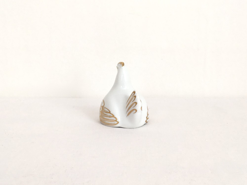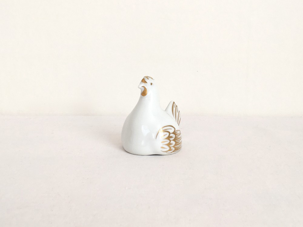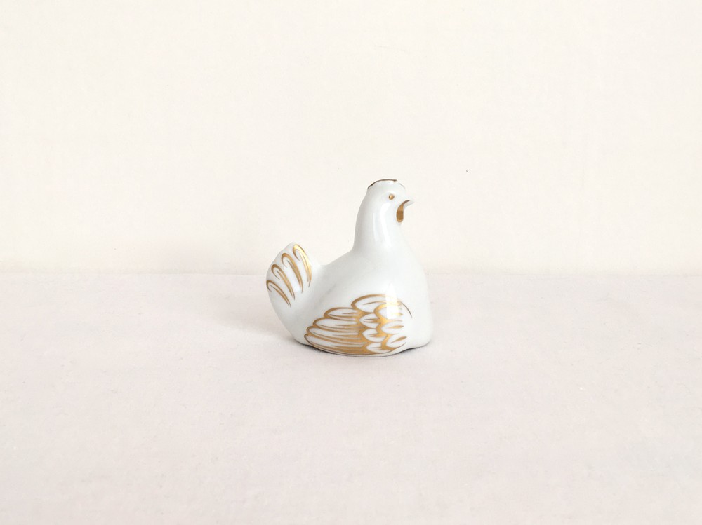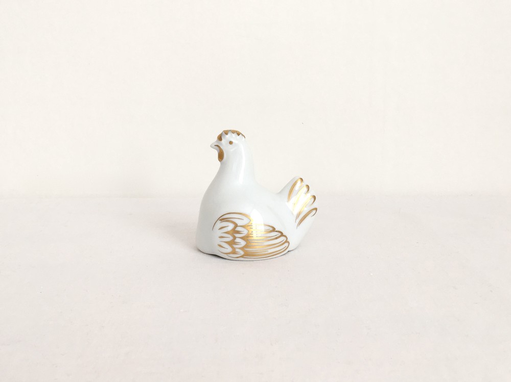 소개해드리는 제품은 1960년대 초반에 만들어진 닭모양의 에그커버로, 뽀얗고 투명한 기운이 감도는 아름다운 하얀색의 포슬린을 소재로 합니다. 유연한 곡선의 흐름으로 전체의 형태가 이루어져 있으며, 로얄우스터에서 추구했던 '열매의 은근한 금빛'의 22k 골드안료를 사용해 몸을 부풀린 닭의 깃털과 표정이 묘사되어있습니다. 귀엽고 매끄러우며, 따스히 우아한 분위기를 보여주는 제품입니다. 본래의 용도에 맞춰 잘 구운 빵과 함께 곁들이는- 아침식탁위의 삶은 달걀의 따뜻한 온도를 유지하는 용도로 사용하기에 알맞으며, 낮은 높이의 초를 덮어두는 커버 또는 테이블위의 냅킨을 정돈하는 문진으로 사용하기에도 아주 잘 어울립니다.
