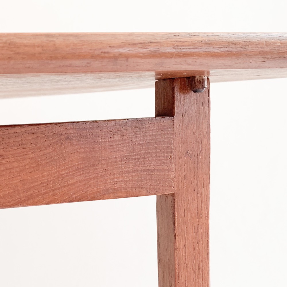 1960년대 초반의 폴딩테이블입니다. 내구성이 좋은 가구-건축용 목재인 티크를 소재로한 제품으로 덴마크에서 만들어졌습니다. 미드센츄리는 내적으로, 물리적으로 오랜시간동안 변하지 않을 수 있는 가치를 담아내는것을 가장 중요한것으로 둡니다. 덴마크의 미드센츄리 가구들은 브랜드의 유무를떠나 그 자체로 하나의 사조를 이루고 있다고 말할 수 있을만큼 견고한 흐름을 가지고있으며, 제품이 만들어지는 각각의 공정에 맞는 마스터들의 손을 거치는 과정으로 완성이 됩니다.