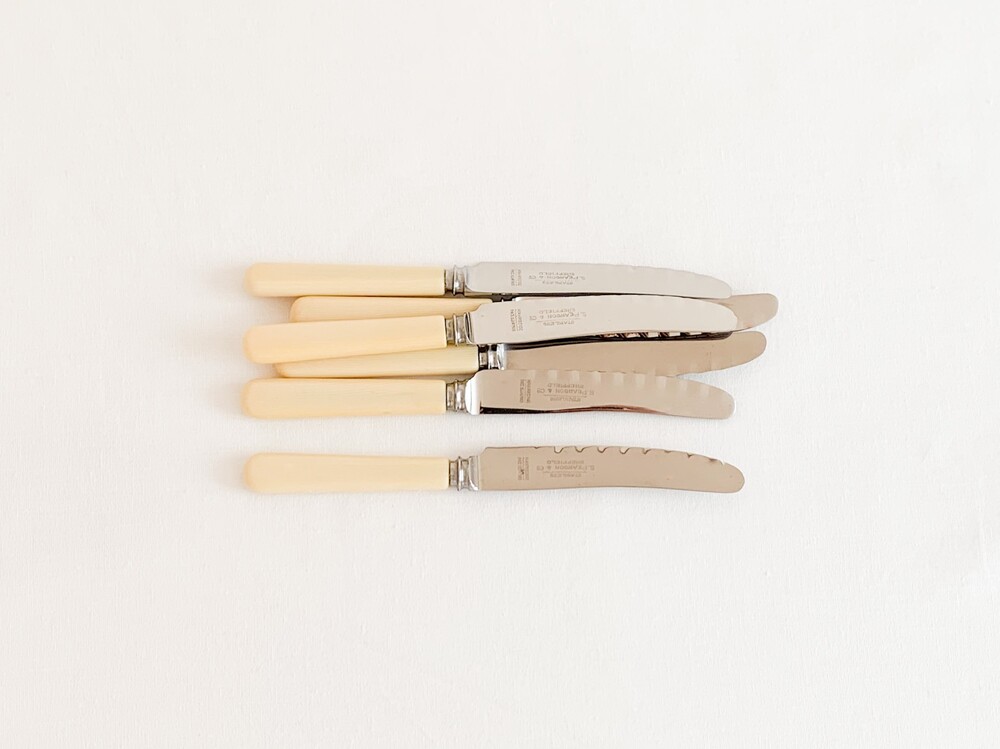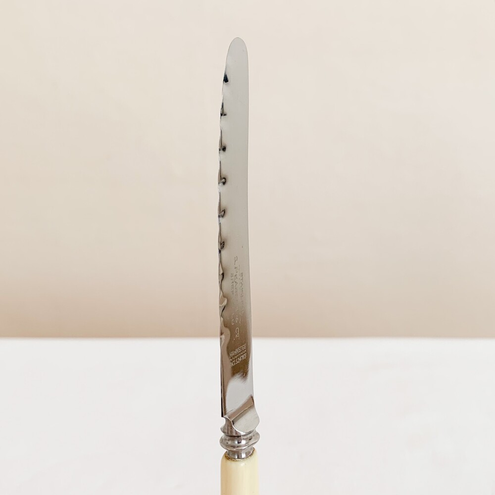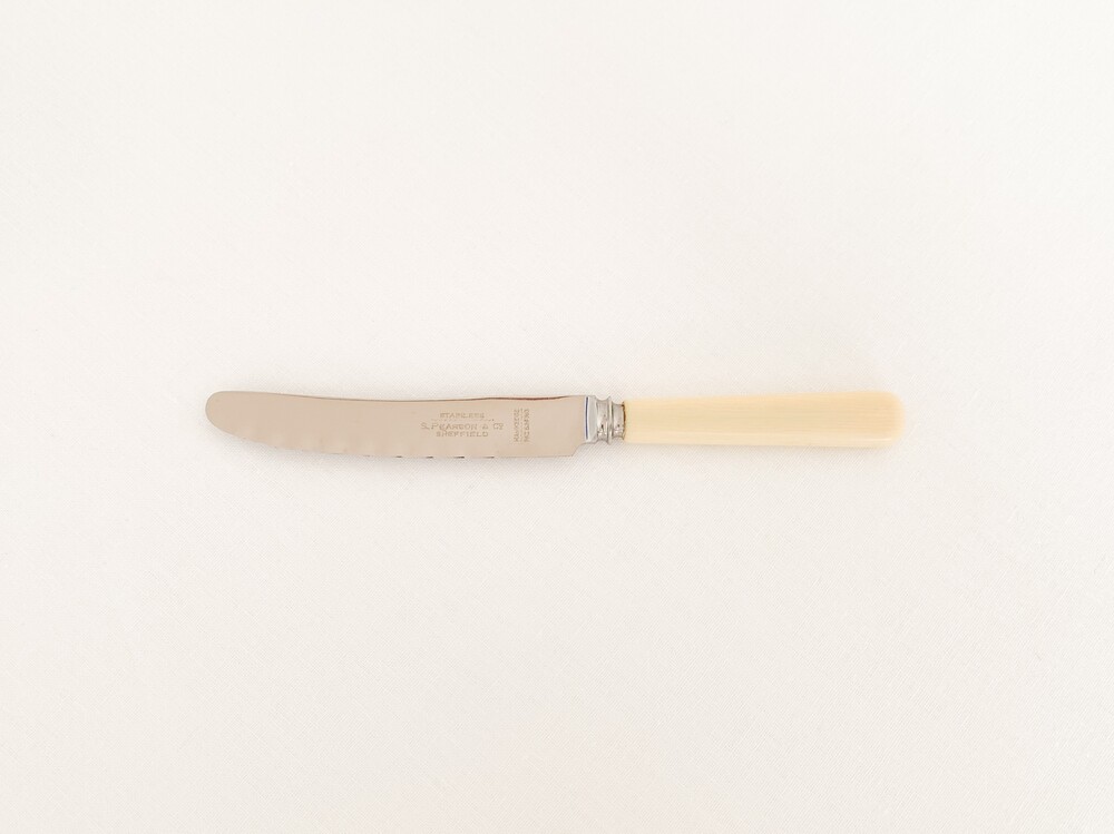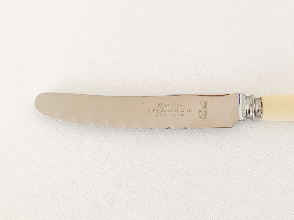 사무엘 피어슨의 빈티지 디저트나이프입니다. 사무엘 피어슨은 1800년대 중반 잉글랜드 요크셔지방에서, 벽돌이나 파이프 등 건축설비를 위한 제품들을 만드는 것으로 시작 된 독특한 이력을 가지고 있는 브랜드입니다. 제한을 두지 않는 넉넉한 경영방법과 섬세함으로, 영국의 상수도나 철도 건설에 큰 기여를 하는 회사가 된 사무엘피어슨은- 1800년대 후반에 들어 헤드쿼터를 런던으로 옮기게 됩니다. 그 이후 일상생활에서 좀 더 밀접하게 접할 수 있는 하우스홀드 하드웨어들을 만들기 시작하고, 자연스래 테이블웨어들을 제작하게 됩니다. 사무엘 피어슨의 테이블웨어들은- 큰 바탕을 가지고 있는만큼 안정적인 품질과 다양한 디테일들로 보편적인 인기를 가지게 됩니다.