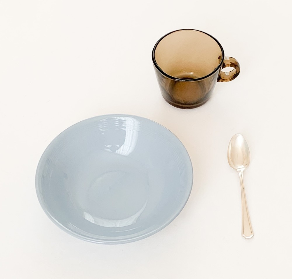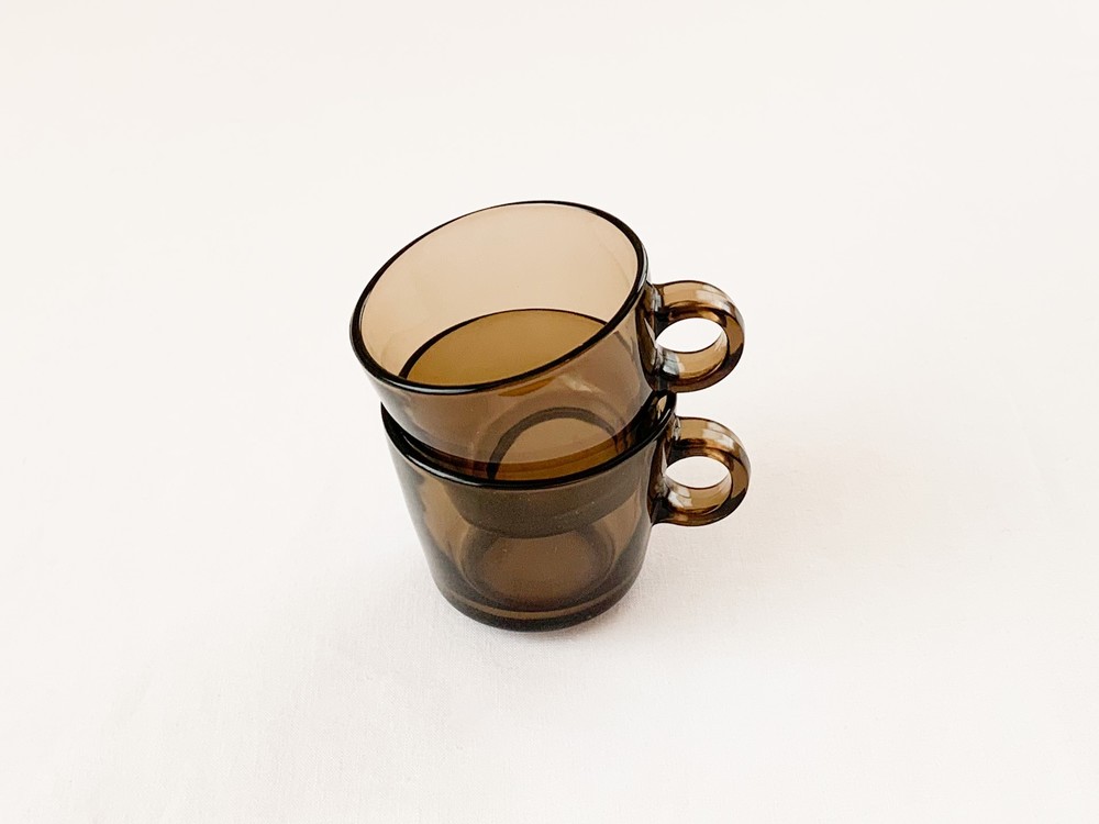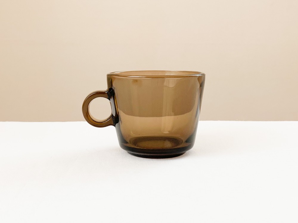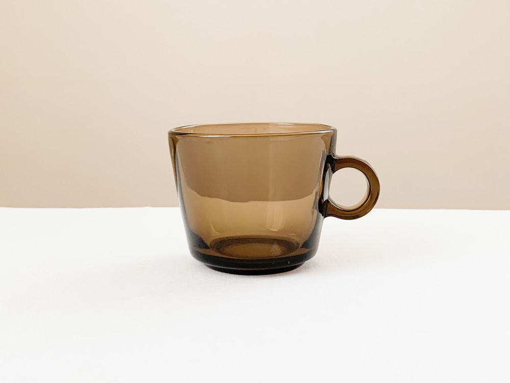 소개해드리는 제품은 1960년대에 제작 된 베레코의 찻잔세트로, 회색의 맑은 유리를 소재로 합니다. 단정하고 둥근 면과 선들로 모양을 갖추고 있으며, 깊고 매끄러운 찻잔과 시원한 펼쳐짐을 가진 잔받침이 짝을 이룹니다. 투명함과 투명함이 만나 보여지는 리듬의 겹쳐짐, 고르게 반짝이는 잔잔한 빛이 아름답습니다. 차가운 크림을 얹은 향긋한 커피나 허브를 얹은 바닐라 아이스크림 같은 로맨틱하고 향기로운 디저트를 담아내는 컵으로 사용하기에 잘 어울립니다.