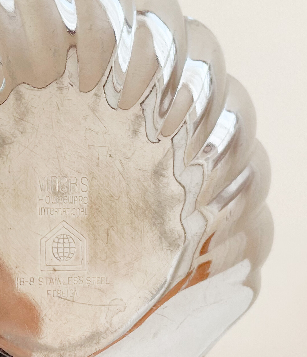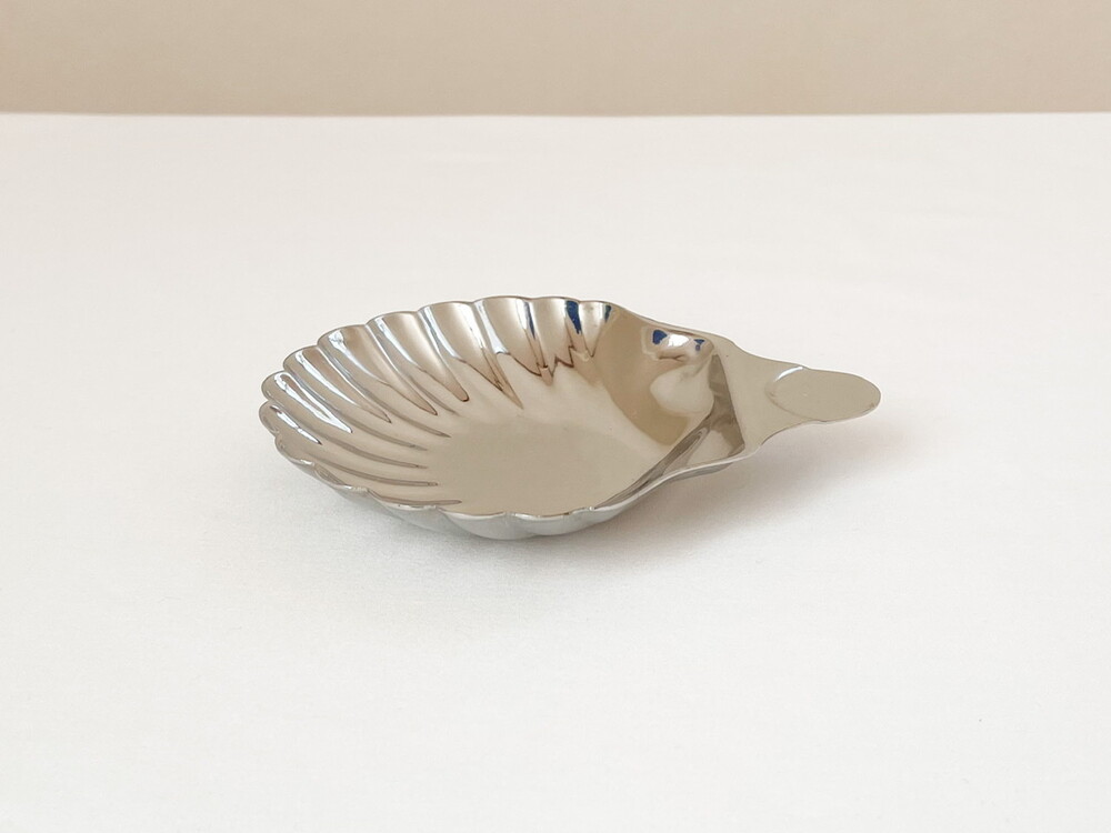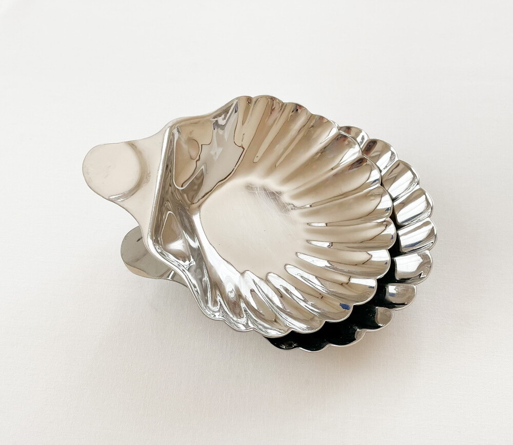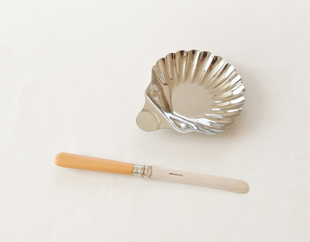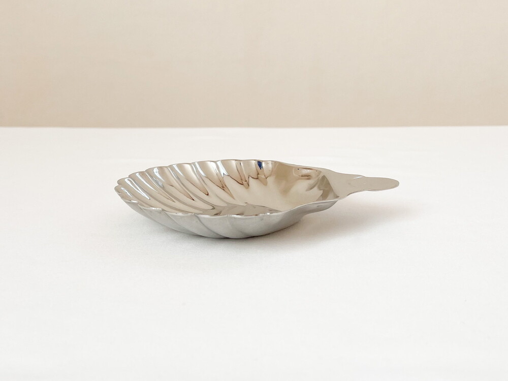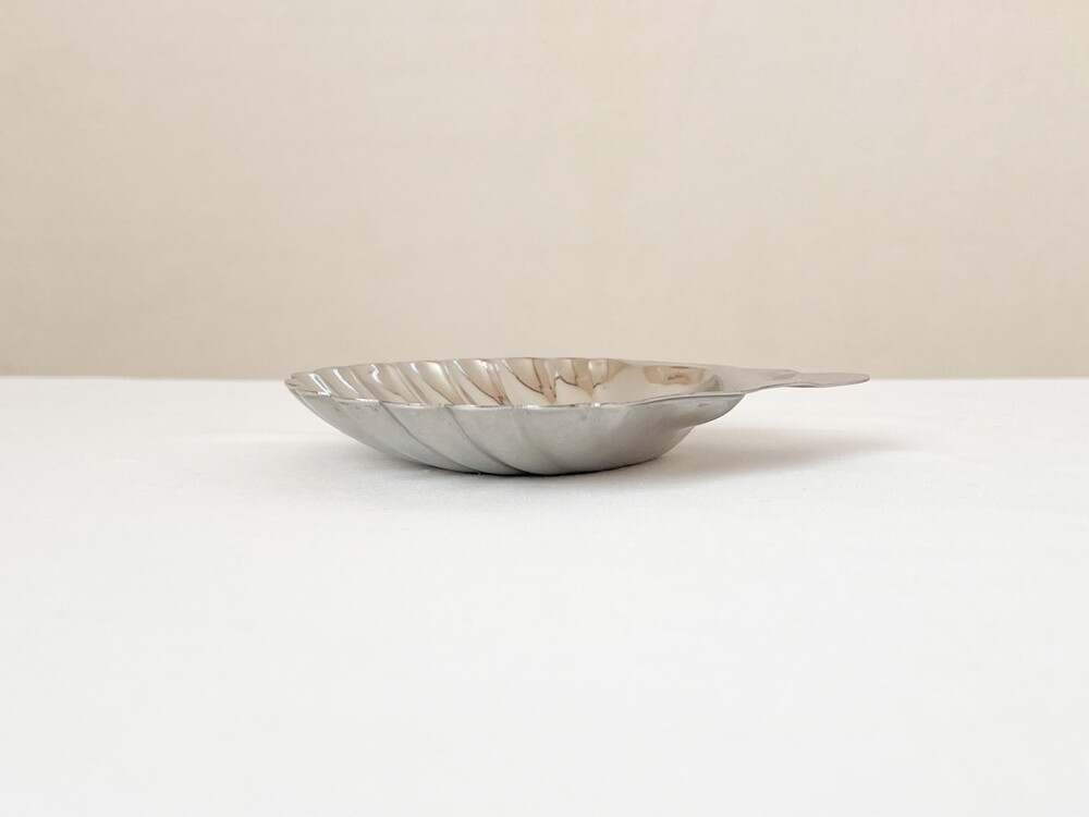 바이너스는 영국 셰필드지방에서 1901년부터 커틀러리를 만들기 시작한 브랜드로, 전통적인 방법으로 은세공품을 제작하는 실버스미스가문의 아돌프 바이너로부터 설립되었습니다. 은을 다루는 섬세함과 동시대의 발전하는 재료들의 알맞고 세련된 균형을 특징으로 가지고 있습니다. 점차적으로 입지를 넓혀가던 바이너스는 1930년대에 들어 조지5세의 왕가에서 사용하는 식기들을 제작하게 되며 전성기를 맞이하고, 영국을 포함한 유럽과 북미, 일본등지에서 큰 인기를 가지게 됩니다. 소개해드리는 제품은 1960년대에 만들어진 작은 접시입니다. 오븐-투-테이블웨어나 베이크웨어로 사용 될 수 있도록 만들어진 접시로, 넓직하고 가지런한 물결무늬의 조가비 모양을 가지고 있습니다. 잘 다듬어진 부드러운 표면, 섬세한 세공이 보여집니다. 모티브가 가지고 있는 로맨틱하고 느긋한 감정과 담담하고 깨끗한 소재의 어울림이 편안한 기분을 전해줍니다. 테이블의 가운데에 두는 버터나 스파이스를 담아내는 접시로, 본래의 용도에 맞는 오븐요리나 베이킹을 위한 그릇으로 사용하기에 잘 어울립니다.