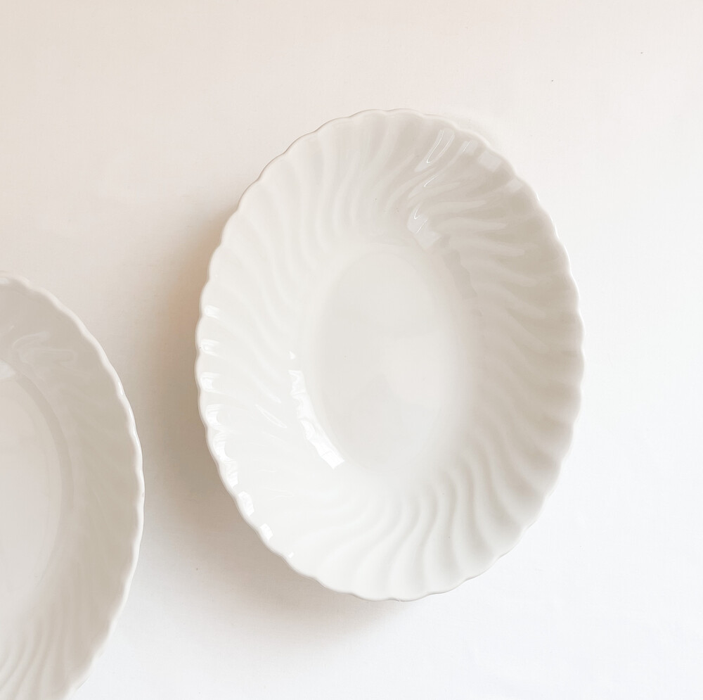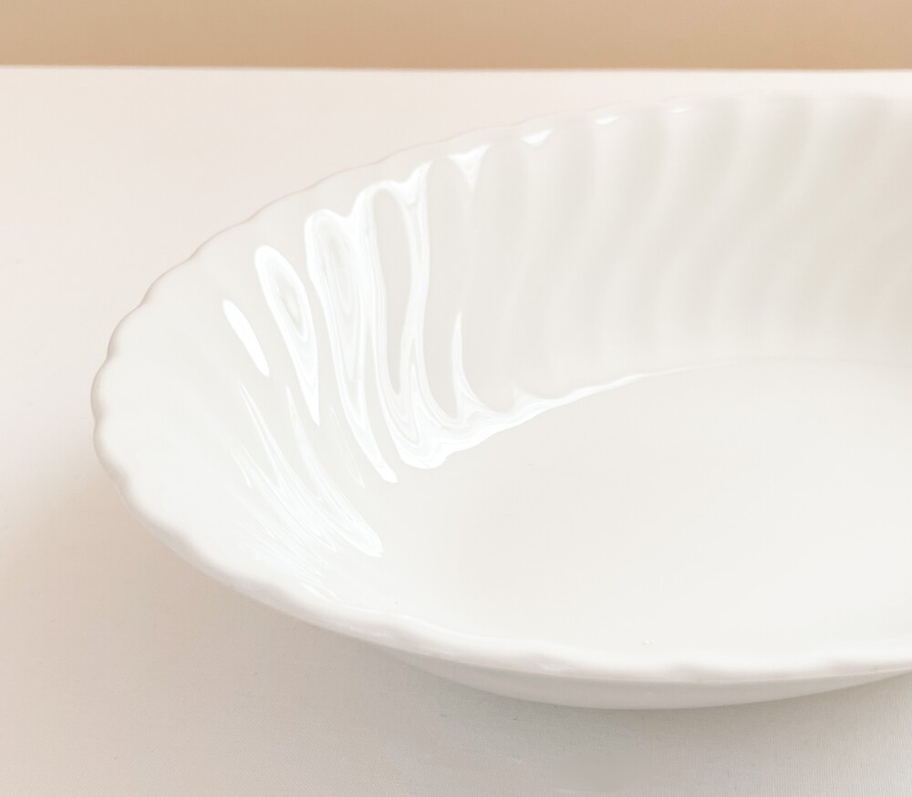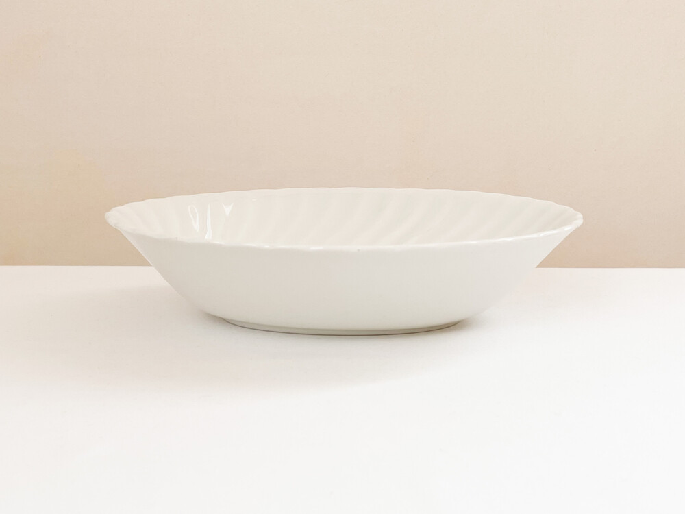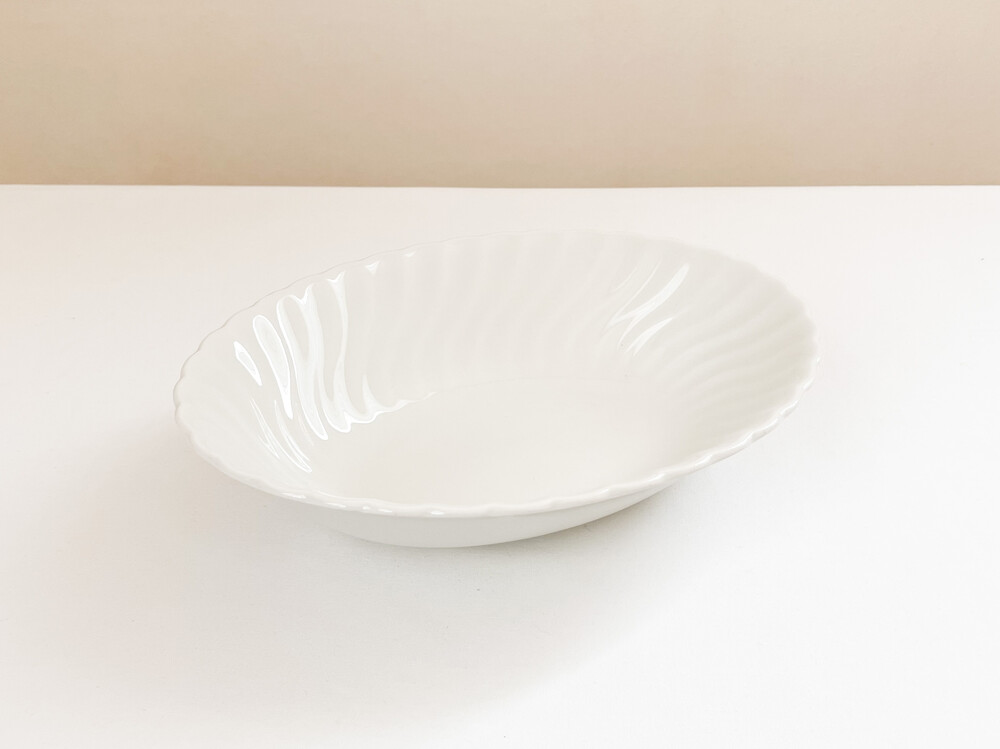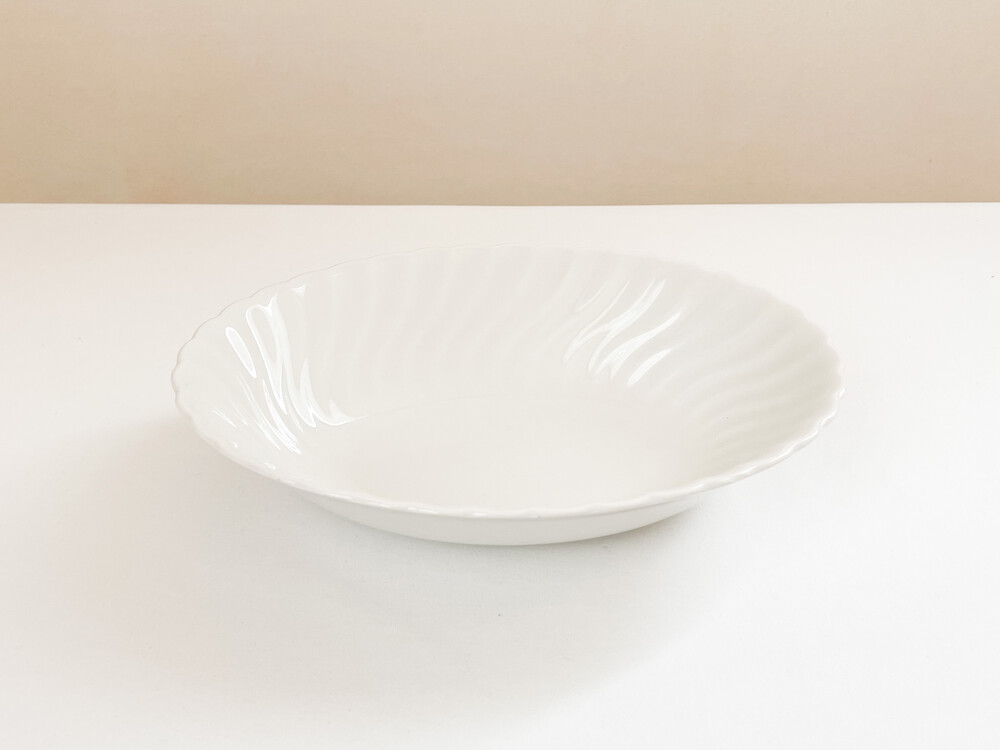 존슨브라더스는 1883년 영국 도자기의 중심지 스토크온트렌트에서 시작된 브랜드입니다. 화이트웨어라는 식탁의 기본이 될 수 있는 모티브를 가지고, 사용과 관리가 편리한 도기와 좋은 내구성이 좋은 자기의 특징을 두루 갖춘 테이블웨어를 만들었습니다. 1900년대에는 영국 왕실이 주최가되는 어워드에서 좋은성과를 거두며 가치를 증명하였고, 쓰임새좋은 생활용품과 훌륭한 수집품으로서의 위치를 유지하고 있습니다. 소개해드리는 제품은 1970년대에 제작 된 타원형의 넓직한 보울입니다. 존슨브라더스 고유의 차분한 하얀색의 아이언웨어를 소재로하며, 완만하고 깊은 안정감 있는 실루엣으로 빚어졌습니다. 가장자리에는 가지런한 레이스 장식을 놓아 소재의 아름다움과 빛의 일렁임을 가득히 담아냅니다. 희소성이 무척 높은 시리즈로 귀한 수집품으로서의 의미가 충분하며, 넉넉한 크기를 가지고 있어 일상에서 여러 용도로 사용하기에 알맞습니다. 샐러드나 파스타를 담아내는 그릇으로, 과일이나 브리오슈를 담아두는 바스켓으로 놓아두기에 잘 어울립니다.
