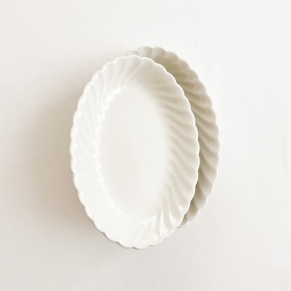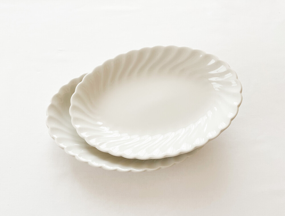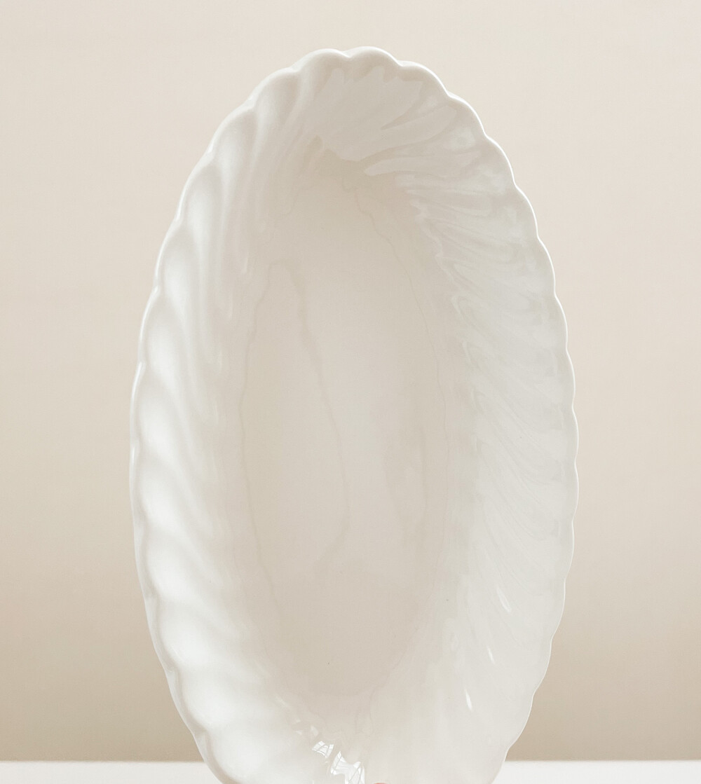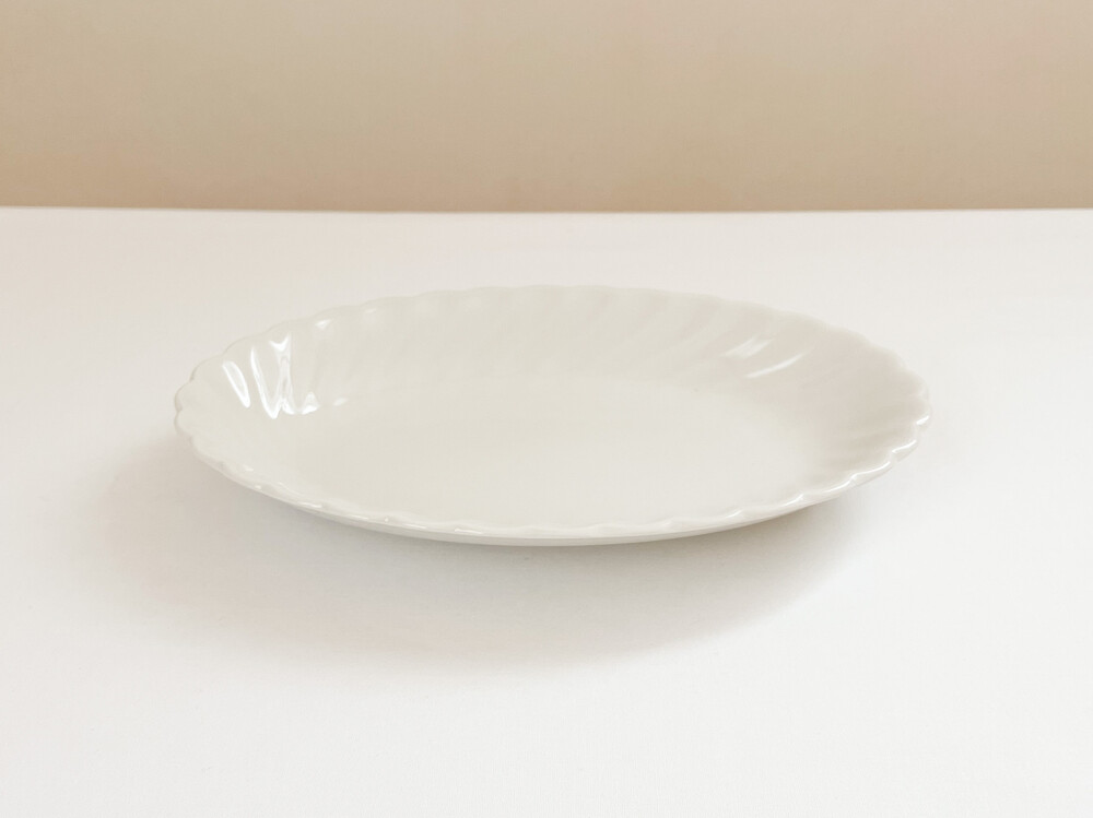 존슨브라더스는 1883년 영국 도자기의 중심지 스토크온트렌트에서 시작된 브랜드입니다. 화이트웨어라는 식탁의 기본이 될 수 있는 모티브를 가지고, 사용과 관리가 편리한 도기와 좋은 내구성이 좋은 자기의 특징을 두루 갖춘 테이블웨어를 만들었습니다. 1900년대에는 영국 왕실이 주최가되는 어워드에서 좋은성과를 거두며 가치를 증명하였고, 쓰임새좋은 생활용품과 훌륭한 수집품으로서의 위치를 유지하고 있습니다. 소개해드리는 제품은 1970년대에 제작 된 타원 접시입니다. 존슨브라더스 고유의 차분한 하얀색의 아이언웨어를 소재로하며, 완만하고 깊은 안정감 있는 실루엣으로 빚어졌습니다. 가장자리에는 가지런한 레이스 장식을 놓아 소재의 아름다움과 빛의 일렁임을 가득히 담아냅니다. 희소성이 무척 높은 시리즈로 귀한 수집품으로서의 의미가 충분하며, 적당한 크기와 비교적 넉넉한 깊이를 가지고 있어 일상에서 여러 용도로 사용하기에 알맞습니다. 샌드위치를 나란히 담아내는 그릇이나 수프 그릇으로, 따뜻한 커피가 담긴 컵과 비스킷 한조각을 함께 내는 트레이로 사용하기에 잘 어울립니다.