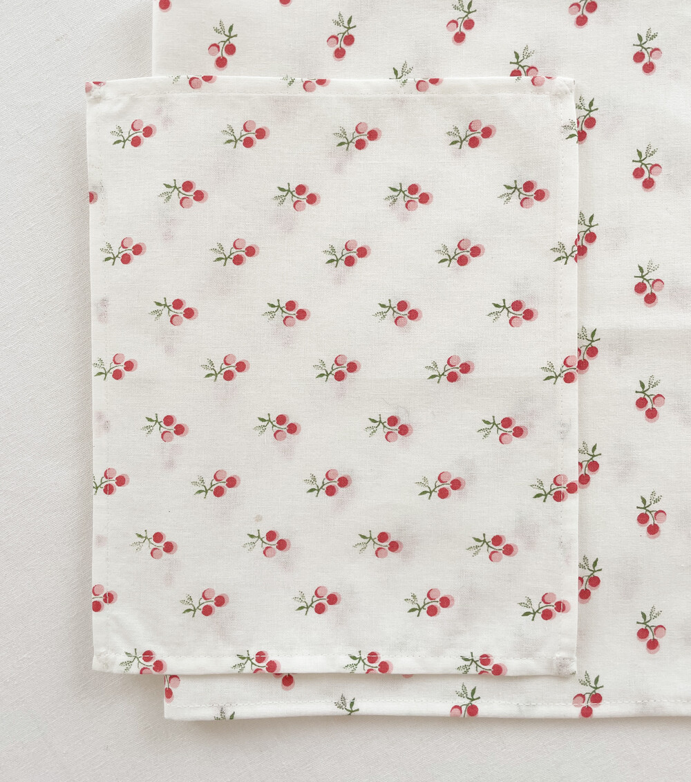 로라애슐리는 1950년대 런던의 핌리코지역에서 시작된 브랜드로, 독자적인 패턴을 이용해 집안에서 쓰이는 패브릭제품들을 만드는것으로 시작된 브랜드입니다. 영국의 복식사를 바탕으로 만들어진- brithsh romantic이라는 모티브의 고전적인 무늬와 레이스의 패브릭으로, 사용하기에 편리한 제품들을 제작하며- 전통과 동시대를 아우르는 여성 디자이너로서 큰명성을 가지게 됩니다. 이후 로라애슐리만의 패턴을 사용한 여러가지 하우스홀드 제품들을 만들어내며 세계적인 브랜드로 범위를 넓혀갑니다. 소개해드리는 제품은 1970년대 중반 영국에서 제작된, 열매무늬가 새겨진 패브릭으로 만들어진 테이블클로스 입니다. 따뜻한 분홍, 차분하고 선명한 빨강, 잔잔한 초록의 세 가지 색을 사용한 작고 둥근 열매가 아이보리의 코튼위로 스크리닝 되어있는 모습입니다. 커틀러리나 찻잔, 디저트 플레이틀 놓기에 적당한 크기의 tea mat, 식사시간에 사용하기에 알맞은 place mat 두 가지 제품이 준비되어 있습니다. 테이블에 화사한 즐거움을 더해줄 클로스로- 과일이나 브레드바스켓, 런치박스를 감싸는 클로스로 사용하기에 잘 어울립니다.