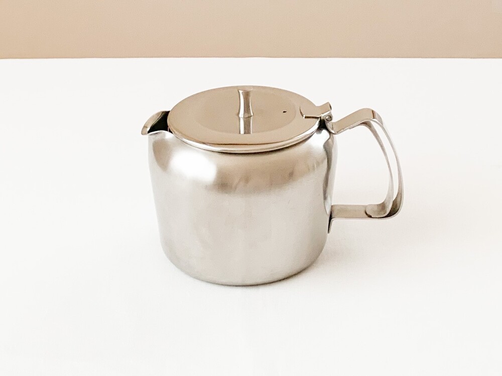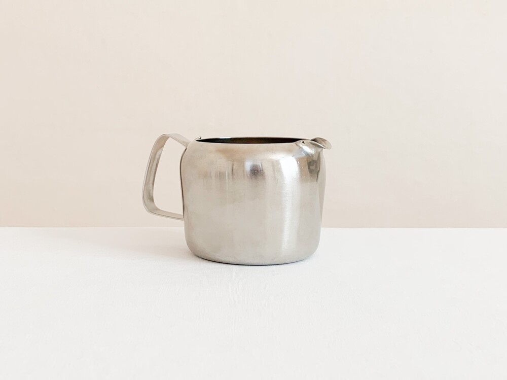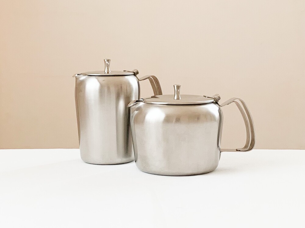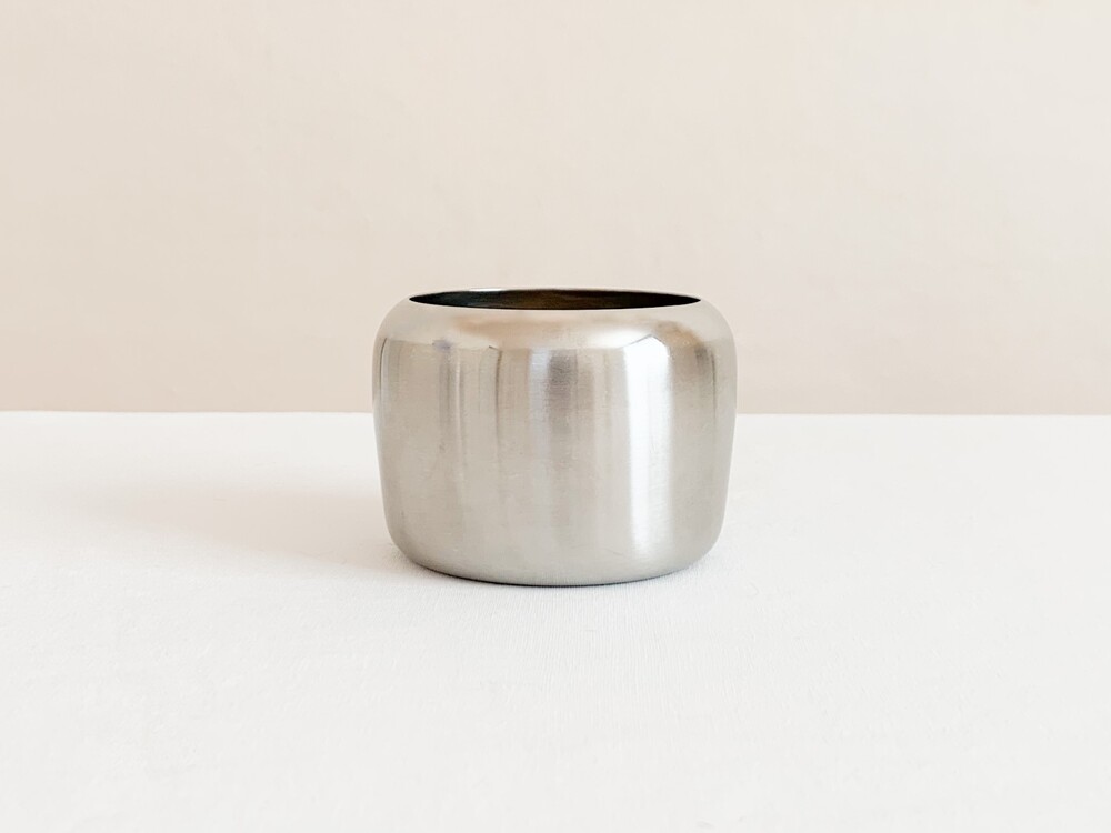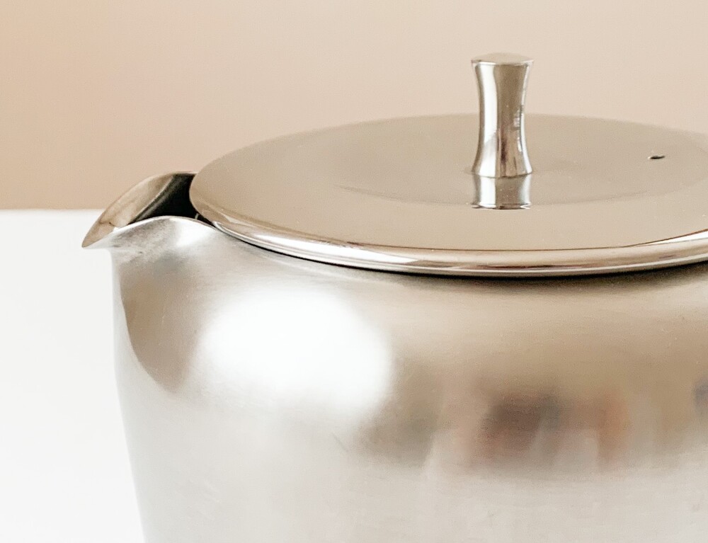 소개해드리는 제품은 디자인어워드에서의 좋은 성과와 로열개런티 가지게 된 이후, 보다 안정적이고 다양한 모습의 제품을 생산했던 시기인 1970년대 초중반 즈음 만들어진 티세트입니다. 티팟과 워터팟 그리고 크리머&슈가보울이 준비되어 있으며, 밀도가 높고 매끄러운 스테인리스 스틸을 소재로 만들어졌습니다. 아래를 향해 살짝 잘록해지는 부드러운 실루엣을 바탕으로 단정하고 세심하게 다듬어진 디테일들을 살펴볼 수 있습니다. 견고하고 변함없는 소재의 무게감과, 유연하고 섬세한 표현들이 만들어내는 균형이 아름답습니다. 넉넉한 용량과 직화사용이 가능해 여러 용도로 편하게 사용할 수 있으며- 매일 사용하는 식탁위의 물주전자로, 여유롭고 아름다운 오후의 티테이블을위한 티웨어나 공간에 은은한 빛을 실어주는 오브제로 사용하기에 잘 어울립니다.