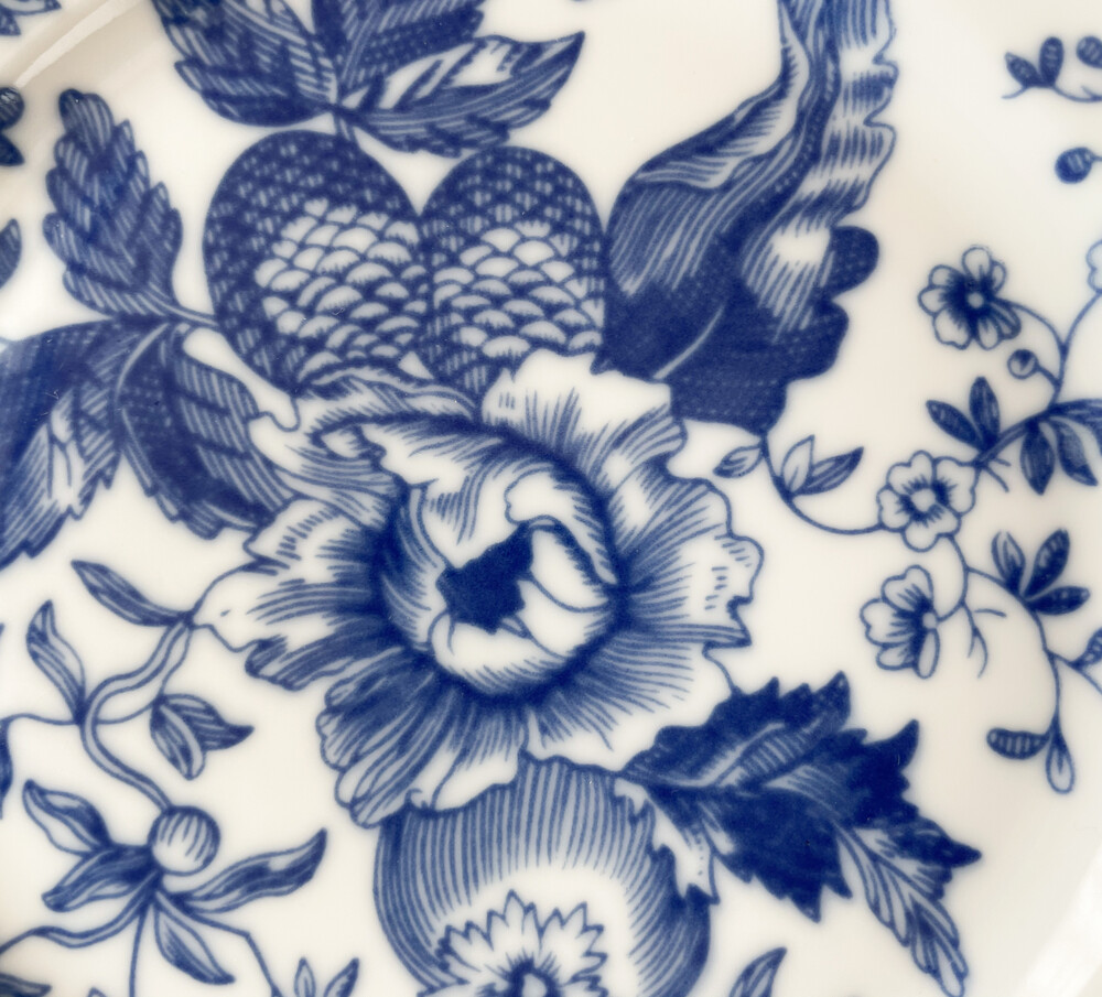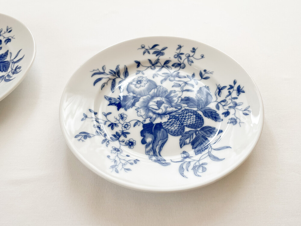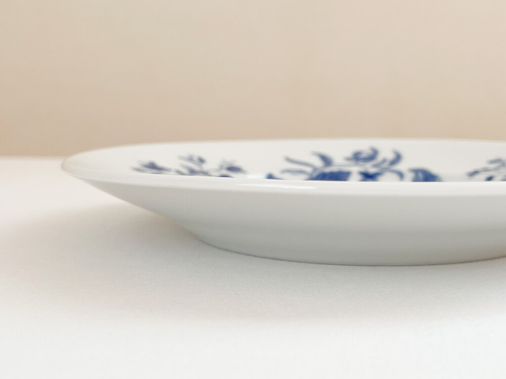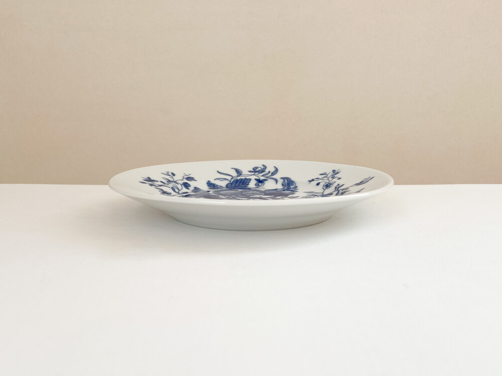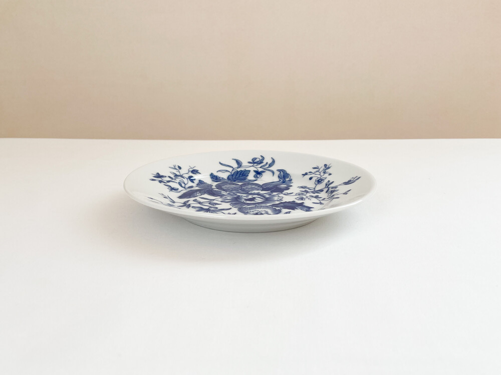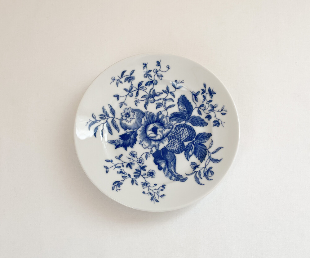 소개해드리는 제품은 1970년대에 만들어진 케이크플레이트 입니다. 창백하고 투명한 아름다운 하얀색의 포슬린을 소재로 합니다. 가장자리의 섬세한 매무새가 돋보이는 둥근 접시에는, 로얄우스터 고유의 아름다움이 잘 전해지는 장식이 보여집니다. 코발트 블루로 표현된 봄과 여름사이의 작약과 전나무열매, 작은 풀꽃과 열매들은- 접시의 가운데에서 가장자리로 펼쳐져 있으며, 경계를 두지 않은 배열은 무늬가 가진 풍성한 자연스러움을 더욱 돋보이게 합니다. 기분전환을 위한 디저트 접시로 사용하기에 아주 잘 어울리며, 과일이나 달걀을 담아두는 부엌의 트레이로 또는 초를 올려켜거나 접시 그대로 공간을 장식하는 오브제로 사용하기에 알맞습니다.