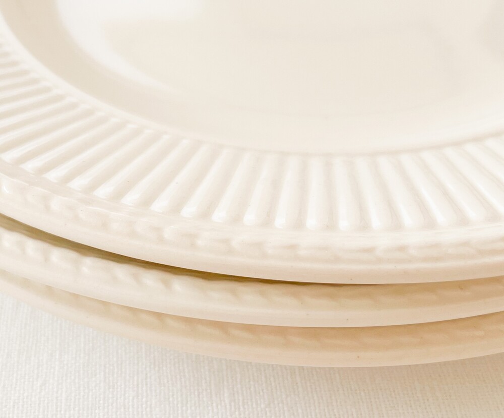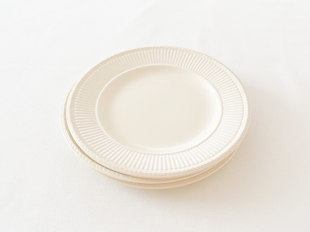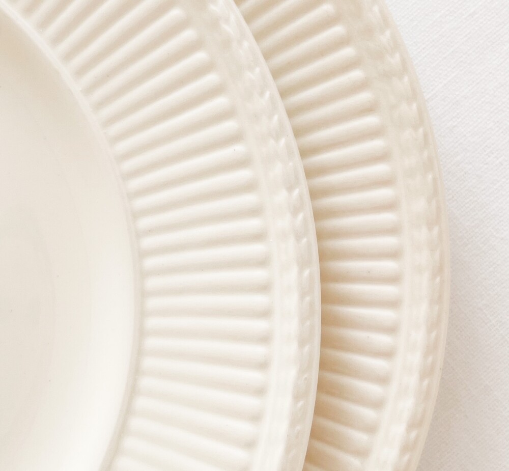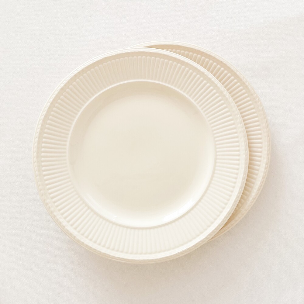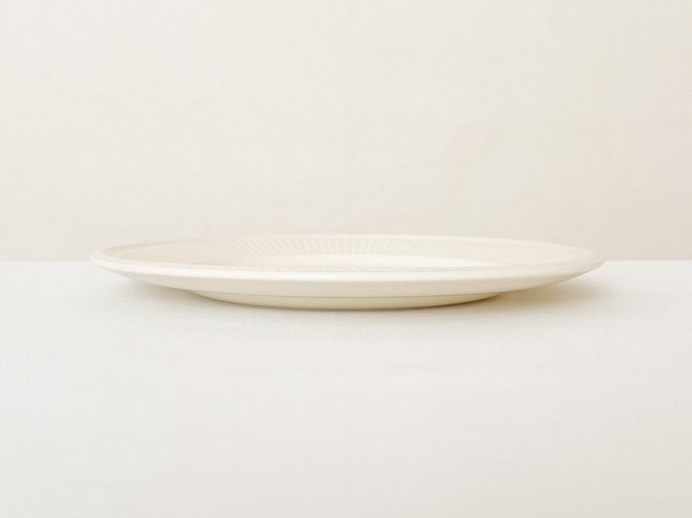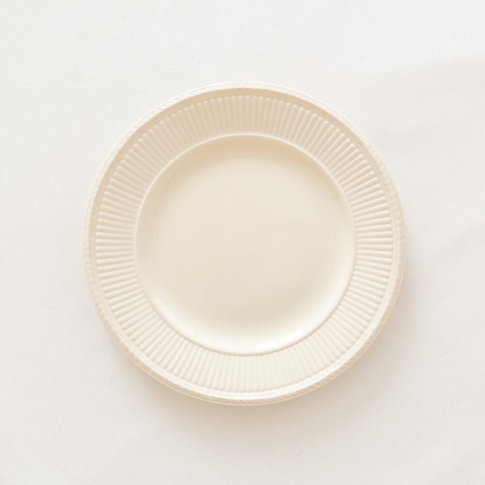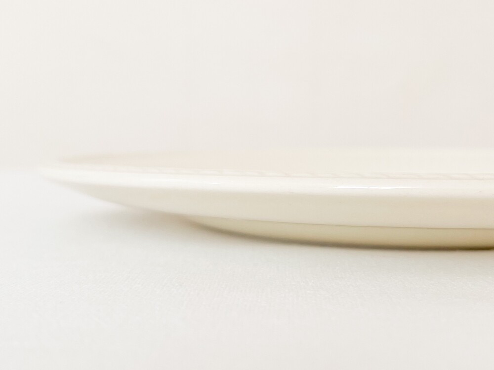 1970년대 초반에 만들어진 웨지우드의 빈티지 에그컵입니다. 웨지우드는 1759년 부터 영국의 버슬램지역에서 도자기를 만들어온 브랜드입니다. 고급 티웨어와 식기들, 그리고 도자기 장식품들을 만들며 가치를 쌓아오는 웨지우드는 1760년대 부터 왕실에 도자기를 납품하게 되고, 섬세한 디자인과 좋은 품질의 도자기를 꾸준히 만들어내며- 영국을 비롯한 도자기라는 카테고리를 대표하는 브랜드로 자리잡게 됩니다. 소개해드리는 제품은 따뜻한 바닐라크림색의 본차이나를 소재로합니다. 낮고 넓게 펼쳐진 동그란 접시는, 전체에 보여지는 온화한 바닐라색과 잘 어울리는- 가지런한 플리츠와 식물의 넝쿨을 모티브로한 작은 무늬가 가장자리를 빙둘러 장식 되어있습니다. 웨지우드 고유의 깊고 부드러운 색감과 섬세한 장식들로 부터 전해지는 우아함이 보여집니다. 티테이블에 놓는 디저트 그릇으로, 잼과 버터와 바삭하 토스트를 담아내는 클라식한 아침식탁을 위한 그릇으로 사용하기에 잘 어울립니다.