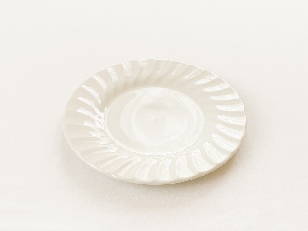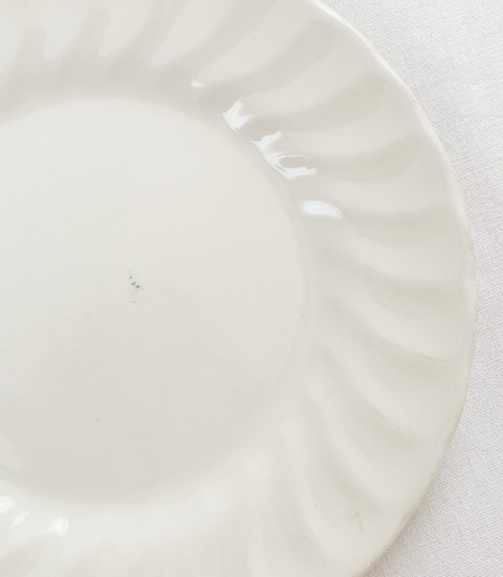 처칠의 빈티지 접시입니다. 처칠은 영국 도자기의 중심지인 스토크온트렌트에서 1795년부터 식기를 만들어오고 있습니다. 양질의 재료를 사용한 좋은 품질과 적은 요소들로 이루어진 실용적인 디자인의 도자기들로 오래도록 그 이름을 유지하고있는 브랜드입니다. 소개해드리는 제품은 1980년대 중후반 즈음 만들어졌으며, 적당한 무게를가진 도톰한 스톤웨어를 소재로 합니다. 살포시 위를 향해 넓게 펼쳐진 동그라미 모양을 가지고 있으며, 적당한 폭의 가장자리는 부드러운 결의 레이스를 닮은 모습으로 장식되어 있습니다. 다른 빛이 섞이지 않은 새하얀 색과 맑은 질감, 단정하고 우아한 분위기가 전해집니다. 과일이나 스위츠를 담아내는 티테이블의 그릇으로, 여럿이 둘러앉은 식사시간의 다정한 접시로 사용하기에 잘 어울립니다.