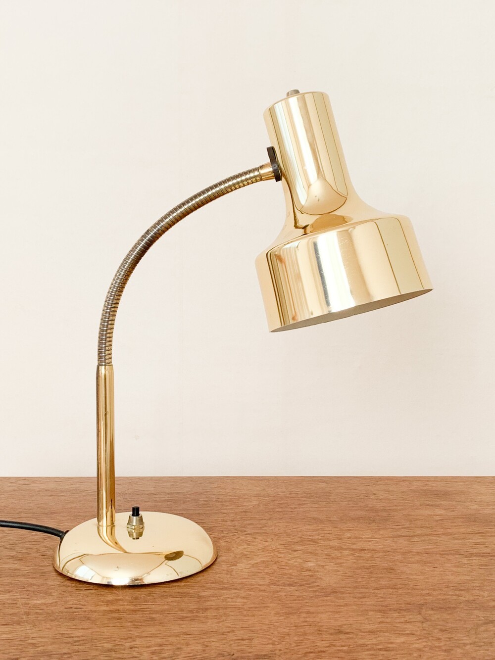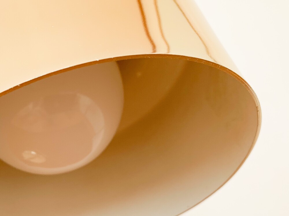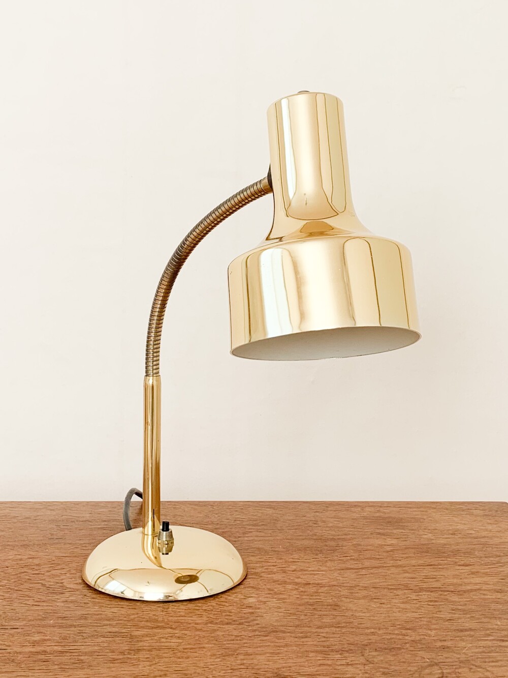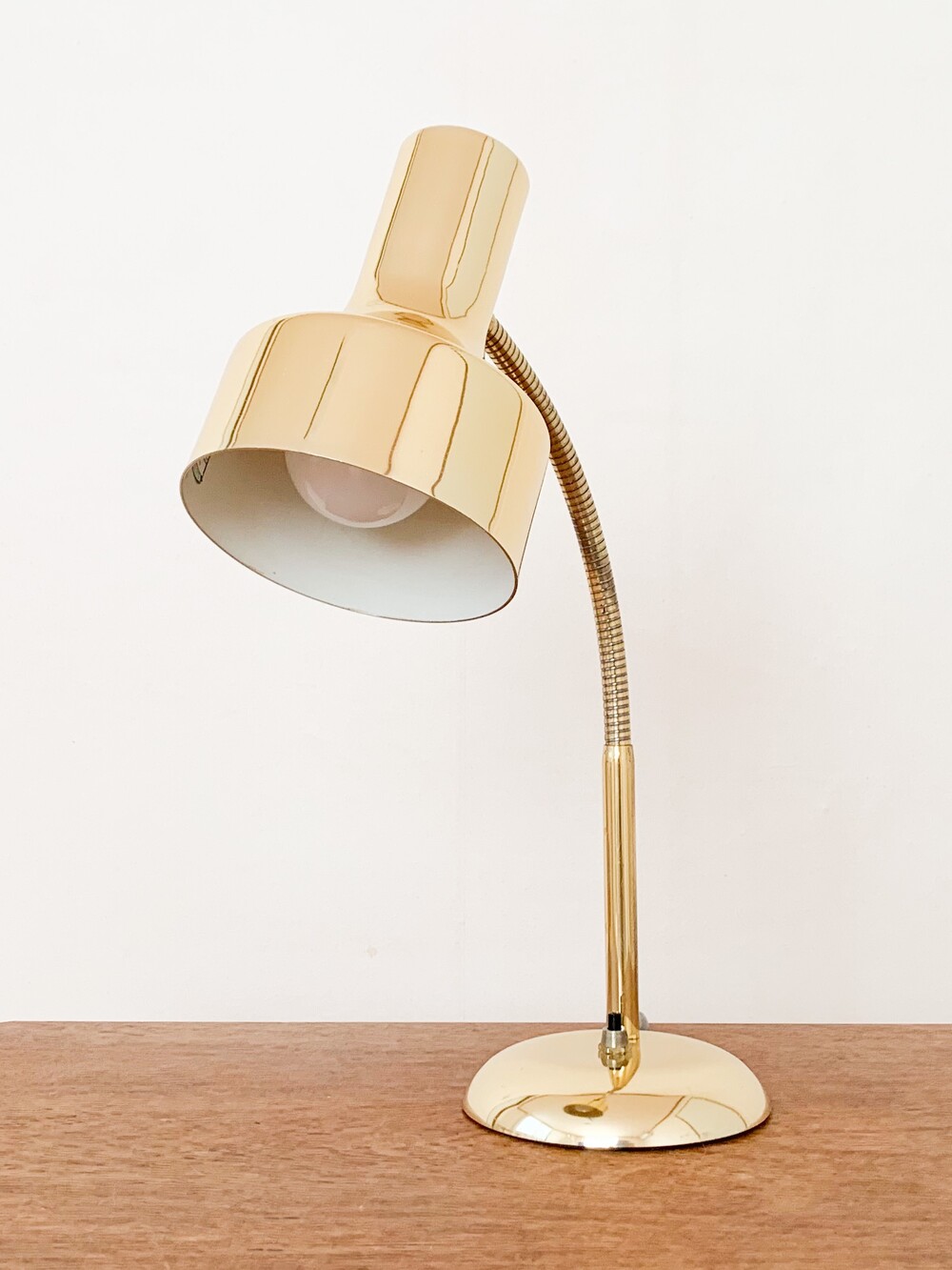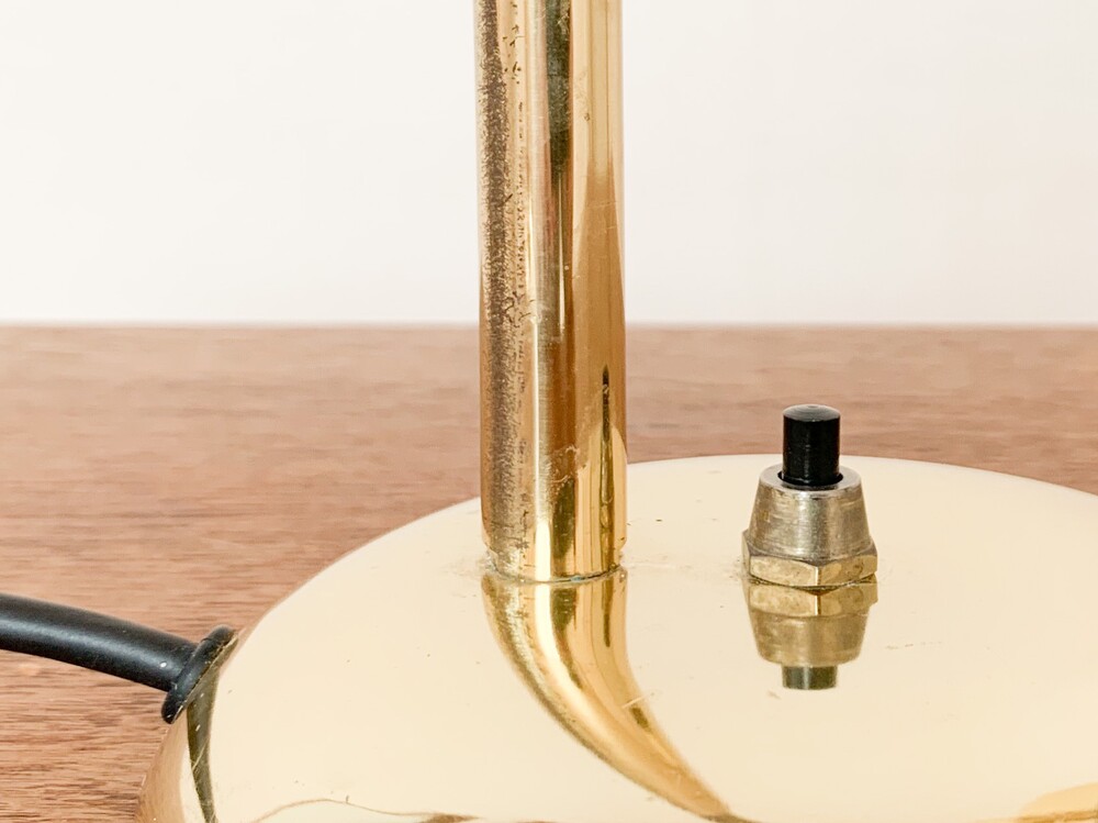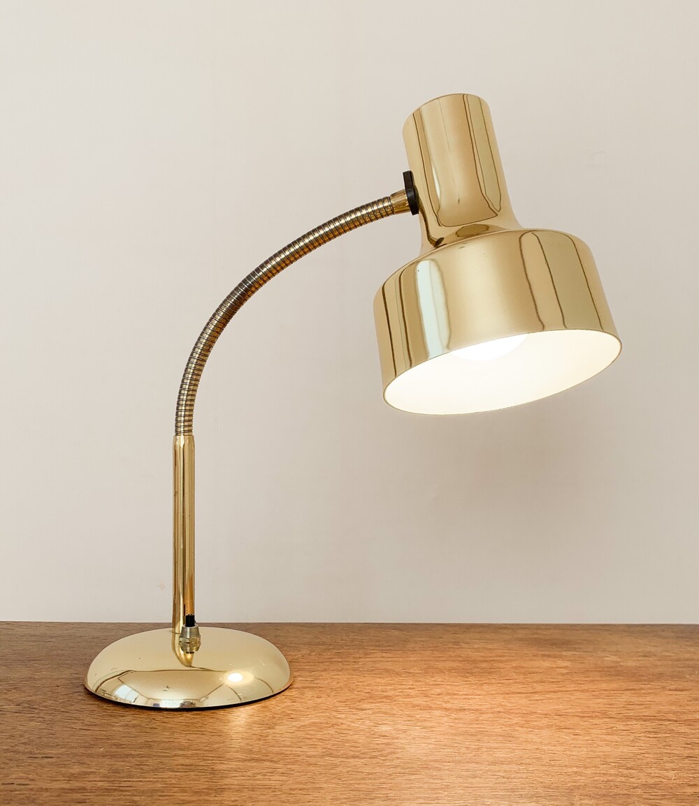 하비타트는 1964년에 설립된 영국의 하우스홀드 브랜드로, 산업디자이너로서 중요한 위치를 가지고있는 콘란에의해 시작 되었습니다. 하비타트라는 이름이 의미하는 것처럼 살아가는데 필요한 여러가지 물건들을 만들어내고있습니다. 미드센츄리디자인과 바우하우스를 기반으로, 보기좋은 디자인과 실용성- 좋은품질과 맥락을 잘 갖춘 적당한 제품들을 제작하며 영국 및 유럽내에서 현재까지도 보편적인 인기를 유지하고 있습니다. 소개해드리는 제품은 1980년대에 제작된 맑은 금빛의 테이블램프 입니다. 메탈을 바탕으로 에나멜안료를 얇게 입혀낸 소재가 사용되었으며- 말끔한 실루엣의 종모양 셰이드, 높이와 각도를 필요에 따라 자유롭게 조절할 수 있는 구스넥, 평평한 동그라미의 베이스로 모양을 이루고 있습니다. 고전적인 구스넥 램프의 모습에서 크게 벗어나지 않으면서, 하비타트만의 동시대적인 분위기 -날씬한 비율과 간결해진 디테일- 를 담아낸 제품입니다. 램프에 불을 밝혔을때는, 전체에 보여지는 금빛과 함께 환하게 펼쳐지는 따스한 반짝임이 보여집니다. 가벼운 독서를 위한 테이블 한켠에 두는 조명으로, 아늑한 쉬는 시간을 위한 소파곁의 조명으로 사용하기에 잘 어울립니다.