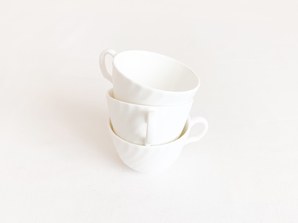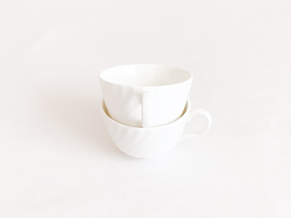 로얄덜튼은 1815년부터 런던을 기반으로, 테이블웨어와 수집품으로서 가치가 있는 물건들을 만들기 시작한 도자기 브랜드입니다. 재능있는 예술가들을 디자이너로 영입하고 양질의 재료를 사용한- 시대의 흐름과 함께하는 세련된 도자기들로 이름을 쌓았습니다. 이후 영국과 유럽각지의 성당과 궁을 장식하기 시작하고, 영국왕실에서 사용하는 도자기들도 제작하게 되며 로얄이라는 칭호를 가질 수 있게 되었습니다. 지금에도 영국적인 무게감과 섬세함이 실린 테이블웨어들로 꾸준한 명성을 가지고 있는 브랜드입니다. 소개해드리는 제품은 1980년대 초반에 제작된 찻잔입니다. 간결함과 실용성에 큰 비중을 두었던 당시의 흐름과 로얄덜튼 특유의 장식적인 모습이 알맞게 어우러진 모습을 보여줍니다. 낮고 넓은 둥근 모양의 찻잔은 뽀얗고 깨끗한빛을 띄는 부드러운 하얀색의 본차이나를 소재로 합니다. 위를 향해 넓게 펼쳐지는 고전적인 찻잔의 형태로 만들어진 찻잔은, 고운 흐름의 물결무늬와 여성스럽고 섬세한 선으로 다듬어진 둥그런 손잡이로 장식되어있습니다. 깨끗하게 정돈된 레이스나 하얀크림케이크를 떠올리게 하는 모습입니다. 예쁜색의 수프나 작은과일을 담아내는 보울로 알맞으며, 기분이 좋아지는 코코아한잔 또는 카페오레를 가득히 담아마시는 잔으로 사용하기에 잘 어울립니다.