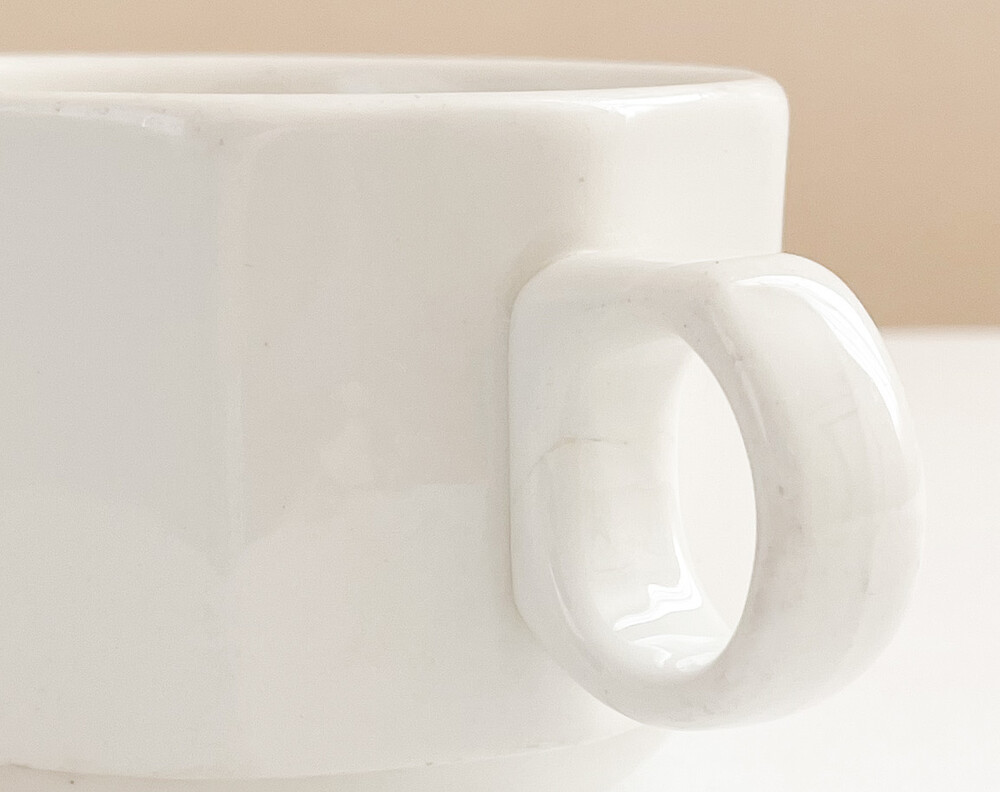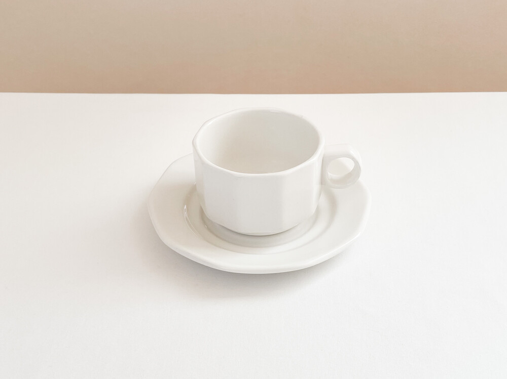 더드슨은 1800년대 초반 잉글랜드 턴스톨지역에서, 가족규모의 스튜디오로 도자기를 만들기시작한 영국의 가장 오래된 테이블웨어브랜드 중 하나입니다. 200여년전 부터 지금까지 어떠한 도구보다 사람의 손을 많이 거치는 전통적인 방법으로 제품을 제작하는것을 유지하고 있으며, 편리함을 중심에둔- 섬세하고 단단한 도자기들을 만들어내는 것을 모티프로 합니다. 소개해드리는 제품은 1990년대에 제작 된 깨끗한 우윳빛의 찻잔과 잔받침입니다. 더드슨 고유의 묵직한 부드러움이 실린 고운결의 스톤웨어를 소재로 합니다. 둥근프레임을 바탕으로 여덟개의 면이 리본처럼 둘러진 찻잔, 잔이놓이는 자리와 가장자리의 경계선에 보여지는 굴곡이 아름다운 장식이 된 잔받침이 준비되어있습니다. 소재의 담담함과 맑은 색감, 섬세한 꾸밈으로 부터 밝고 단정한 감정이 전해집니다. 매일 사용하는 아침의 커피잔이나 요거트나 과일을 담아내는 보울로 사용하기에 잘 어울리며, 오후의 한때를 위한 디저트 그릇으로 쓰이기에 알맞습니다.