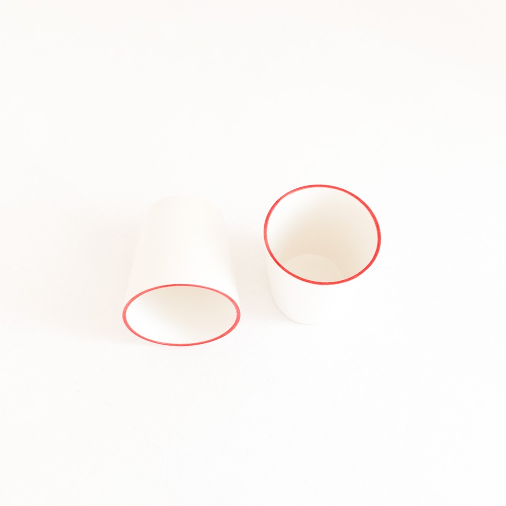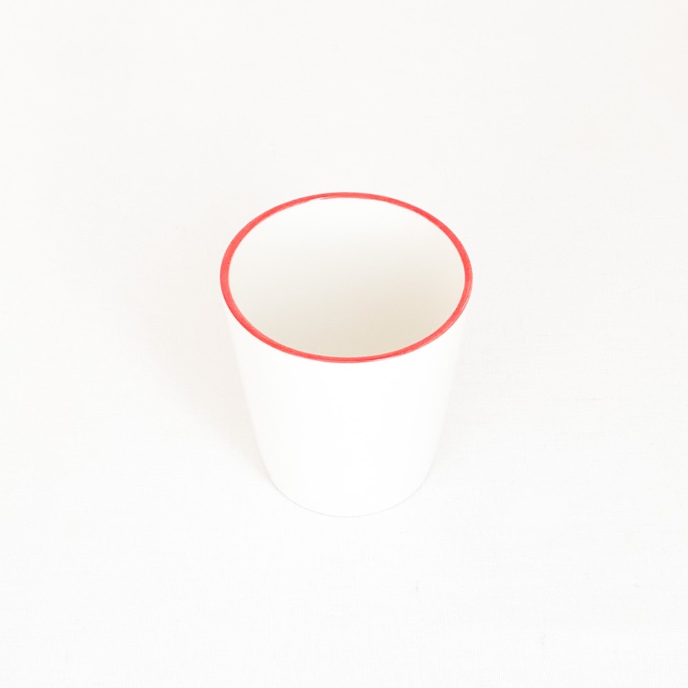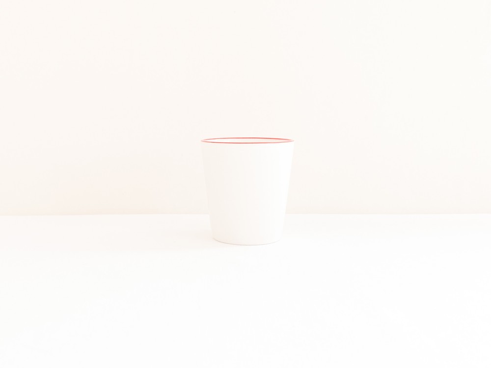 유앤웬즈데이 라운드시리즈의 동그란 컵입니다. 여러용도로 편하게 사용하기에 알맞은 스톤웨어를 소재로 만들어진 컵은- 몰드를 사용해 모양을 만들어내고, 여러번에 걸쳐 결을 다듬어낸 후 무늬와 유약을 입혀 오랜시간 동안 구워내는 과정을 동해 완성이 됩니다. 제품이 만들어지는데에는, 프랑스 Anneyron지역의 순도높은(흙과 물 이외의 제작의 편리성을 위한 물질이 사용되지 않음을 뜻합니다) 흙과 유약 그리고 화학제품이 첨가되지 않은 안료가 사용됩니다. 반듯하고 단정한 모양의 컵의 가장자리에는 반짝이는 작은 열매를 닮은 선명한 빨강의 줄무늬가 그려졌으며, 컵이 가지고 있는 색감이 돋보이는 맑은 광택의 유약이 겉면에 입혀져 있습니다. 한손에 가볍게 들리는 적당한 크기와 사뿐한 무게를 가지고있어, 매일의 식탁을 위한 컵으로 사용하기에 알맞습니다.