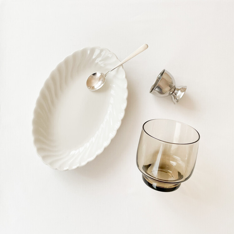 세 가지의 빈티지 테이블웨어 또는 소품으로 구성됩니다.