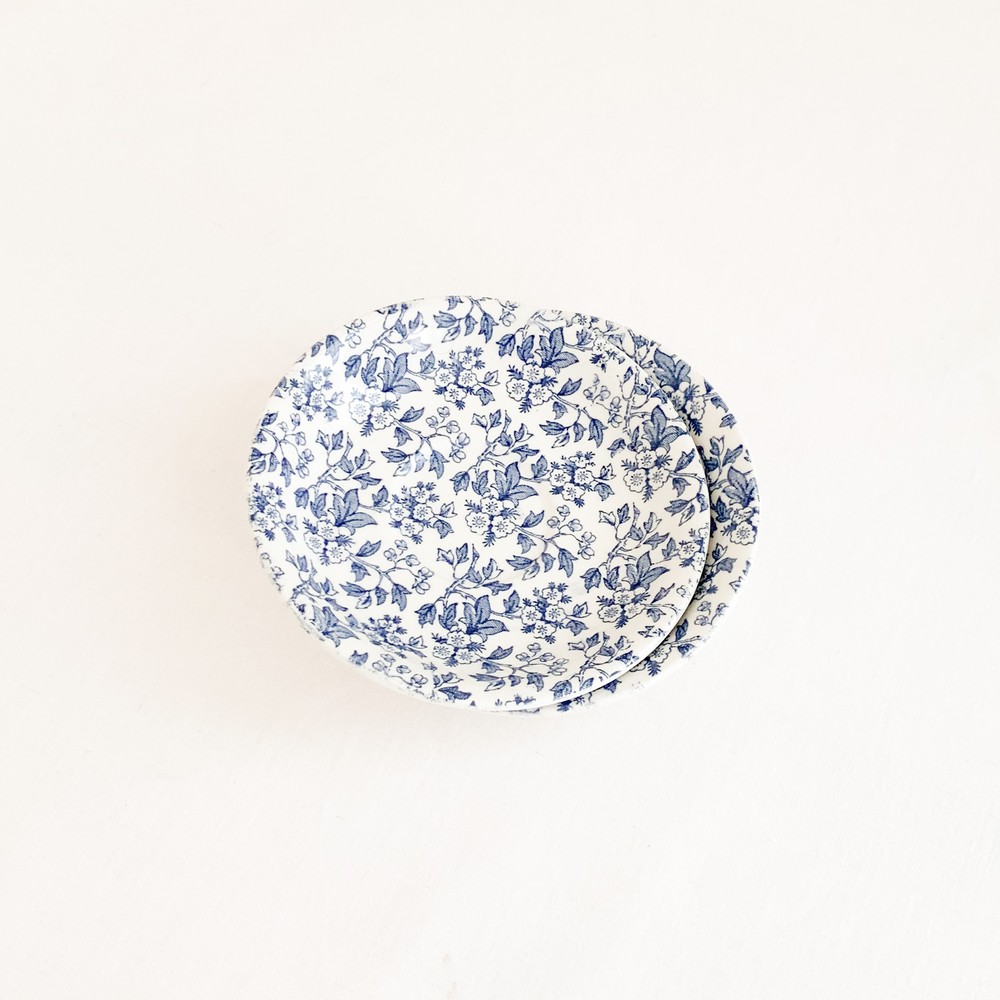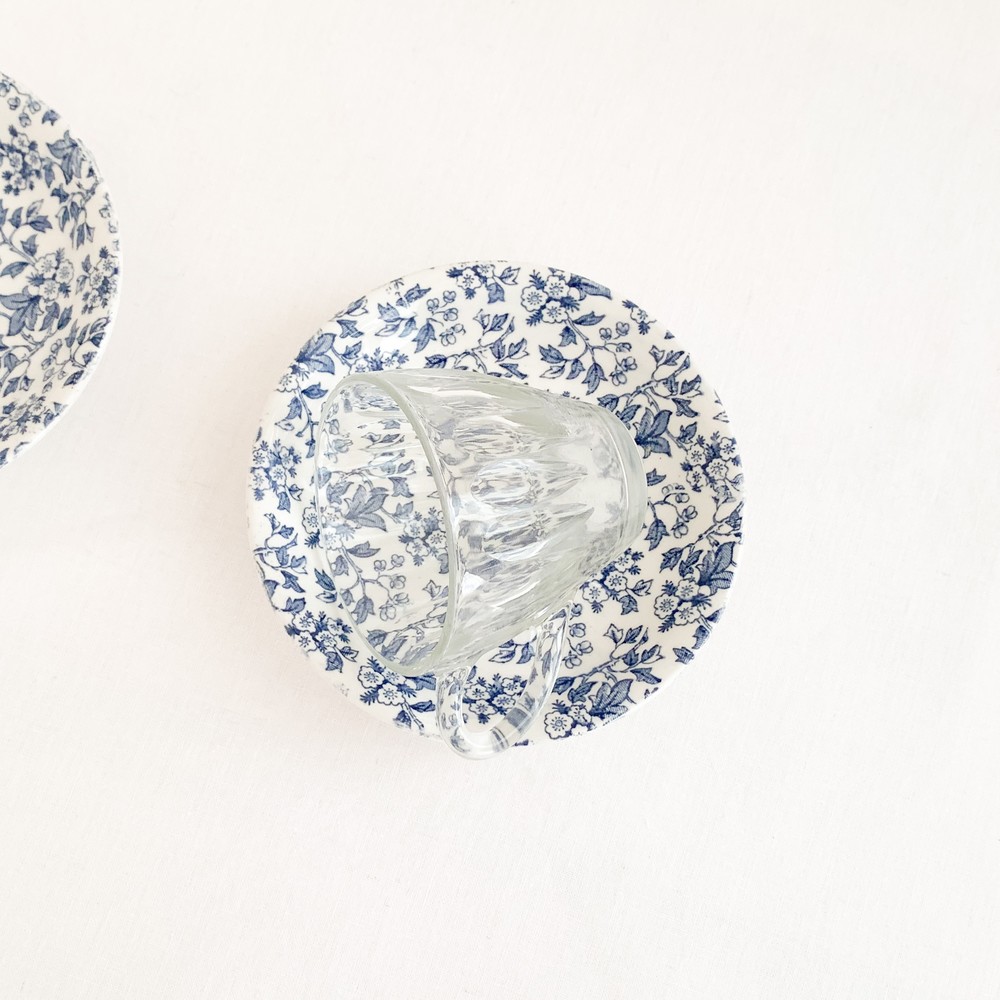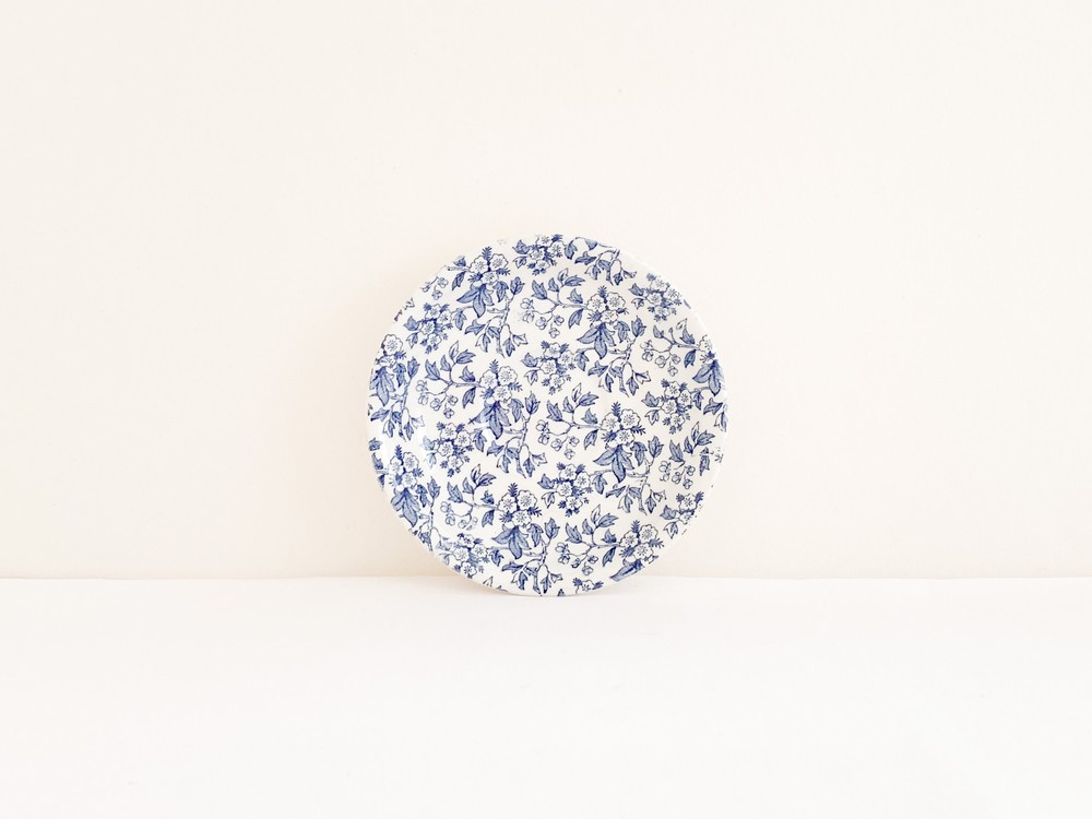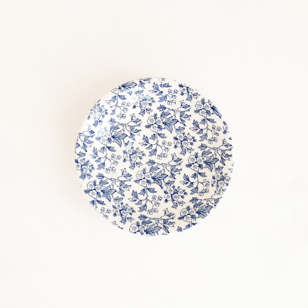 소개해드리는 제품은 1958년의 것으로 전해지는 찻잔받침입니다. 도톰하고 단정한 선을 가지고 있으며, 섬세한 무늬를 표현 할 수 있는 트랜스퍼프린트를 사용하여 겉면에 잔잔한 꽃무늬를 입혀냈습니다. 선명한 푸른색의 꽃무늬는 바탕이 되는 밝은 크림색이 도자기와 아름다운 조화를 이루며, 밝고 보드라운 계절의 정서를 전해줍니다. 깨끗한 분위기의 컵과 함께 사용하는 잔받침으로, 잼쿠키나 파이를 담아내는 디저트 그릇으로 사용하기에 잘 어울립니다.