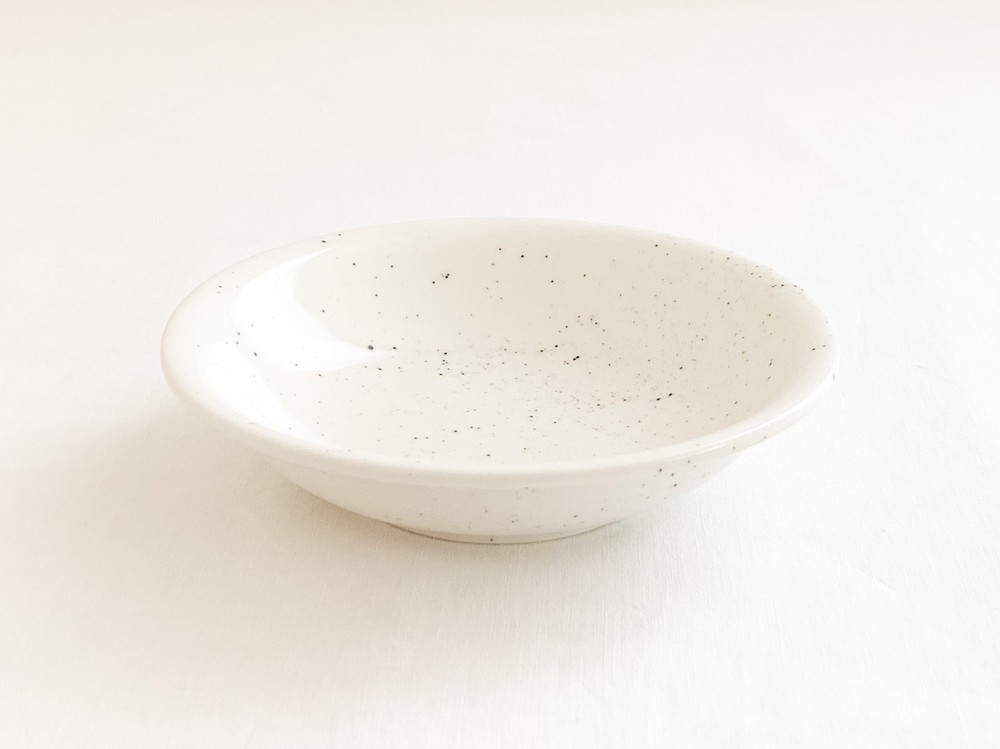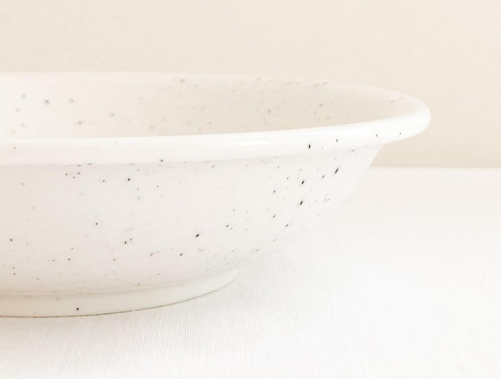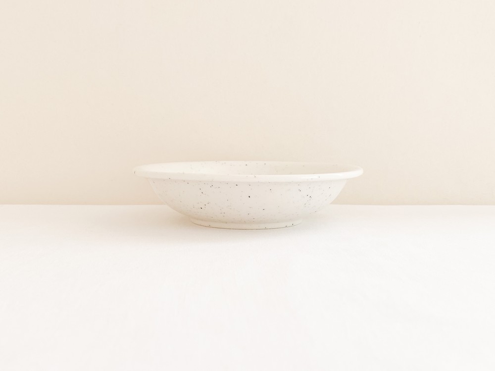 유앤웬즈데이 라운드시리즈의 둥근 보울입니다. 여러용도로 편하게 사용하기에 알맞은 스톤웨어를 소재로 만들어진 보울은, 몰드를 사용해 모양을 만들어내고, 여러번에 걸쳐 결을 다듬어낸 후 무늬와 유약을 입혀 오랜시간 동안 구워내는 과정을 동해 완성이 됩니다. 제품이 만들어지는데에는, 프랑스 Anneyron지역의 순도높은(제작의 편리성을 위해 섞이게 되는 흙과 물이외의 물질이 섞이지 않음을 뜻합니다) 흙과 유약 그리고 화학제품이 첨가되지 않은 안료가 사용됩니다. 둥글고 매끄러운 선으로 오목하게 빚어진 보울의 겉면에는, 바살트를 재료로한 잔잔한 스페클무늬가 보여지며 바탕이 되는 크림색의 스톤웨어와 보기좋은 리듬을 만들어냅니다. 시리얼이나 수프를 담아내는 편안한 그릇으로, 디저트나 아이스크림을 담아내는 보울로 사용하기에도 알맞습니다.