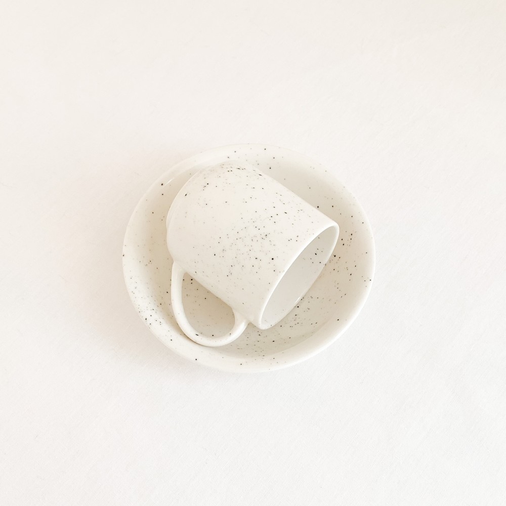 유앤웬즈데이 라운드시리즈의 넉넉한 찻잔입니다. 여러용도로 편하게 사용하기에 알맞은 스톤웨어를 소재로 만들어진 찻잔은, 몰드를 사용해 모양을 만들어내고, 여러번에 걸쳐 결을 다듬어낸 후 무늬와 유약을 입혀 오랜시간 동안 구워내는 과정을 동해 완성이 됩니다. 제품이 만들어지는데에는, 프랑스 Anneyron지역의 순도높은(제작의 편리성을 위해 섞이게 되는 흙과 물이외의 물질이 섞이지 않음을 뜻합니다) 흙과 유약 그리고 화학제품이 첨가되지 않은 안료가 사용됩니다. 둥글게 정돈된 선들이 보여지는 찻잔의 겉면에는, 바살트를 재료로한 잔잔한 스페클무늬가 보여지며 바탕이 되는 크림색의 스톤웨어와 보기좋은 리듬을 만들어냅니다. 우유를 마시거나 따뜻한 차를 마시는 매일사용하는 찻잔으로, 짙은 커피를 마시는 넉넉한 컵으로 사용하기에 잘 어울립니다.